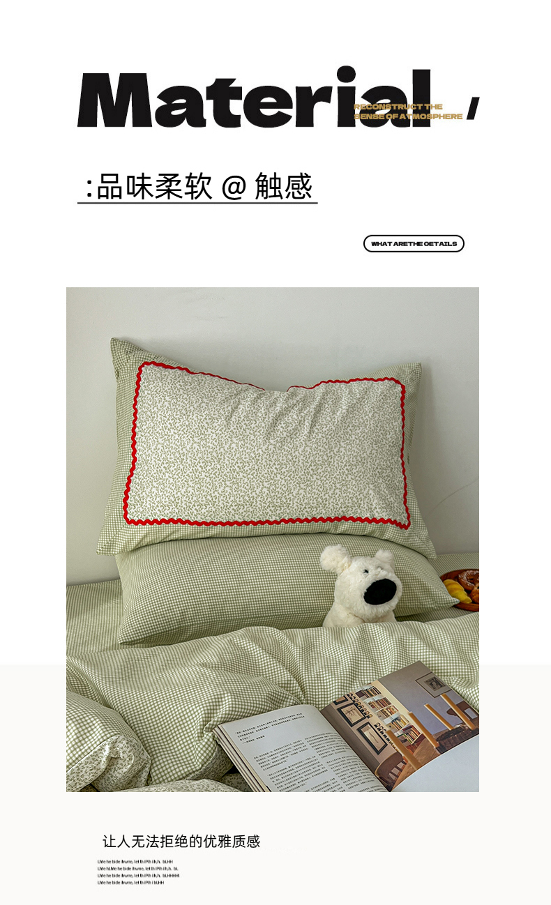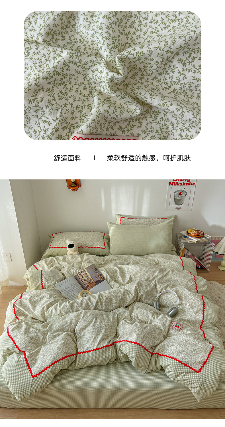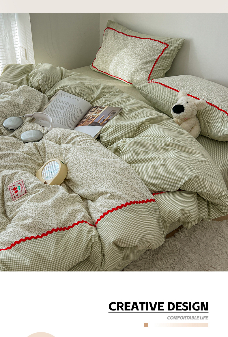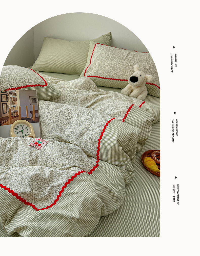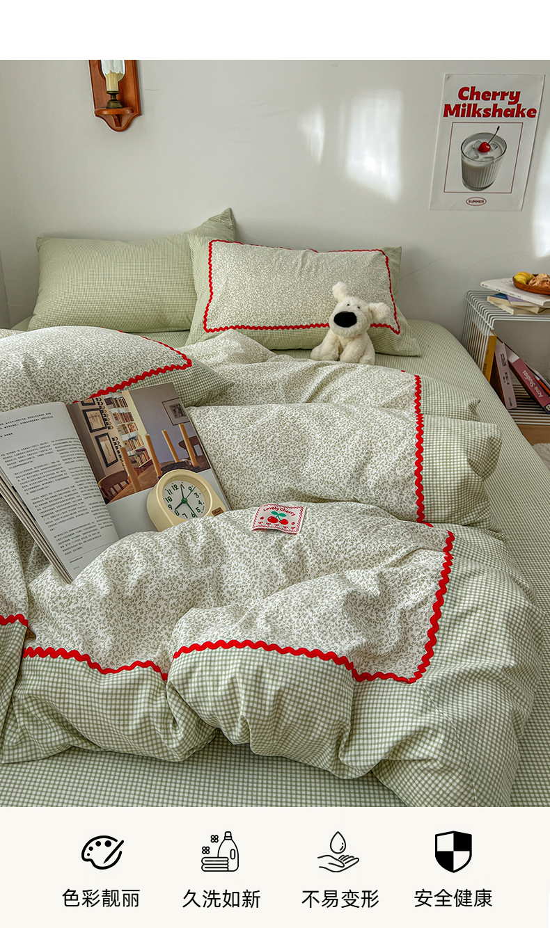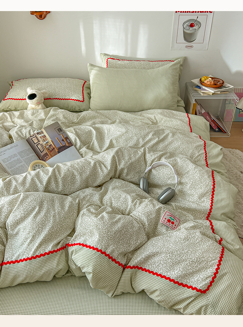 当前位置: 91家纺网 > 商品网购 > 床品套件 > 四件套 > 全棉普通四件套 > 睡美美家纺 2026新款古法水洗贴布格纹碎花云朵棉四件套-格纹小碎花 格纹小碎花--青柠