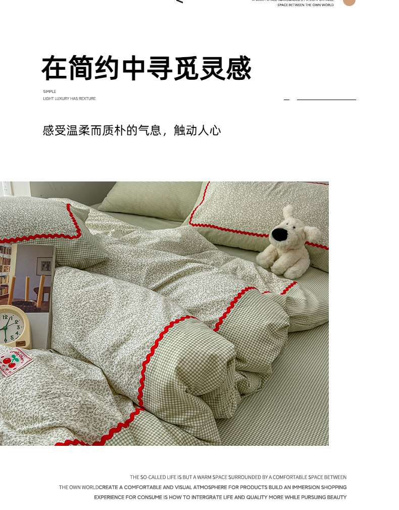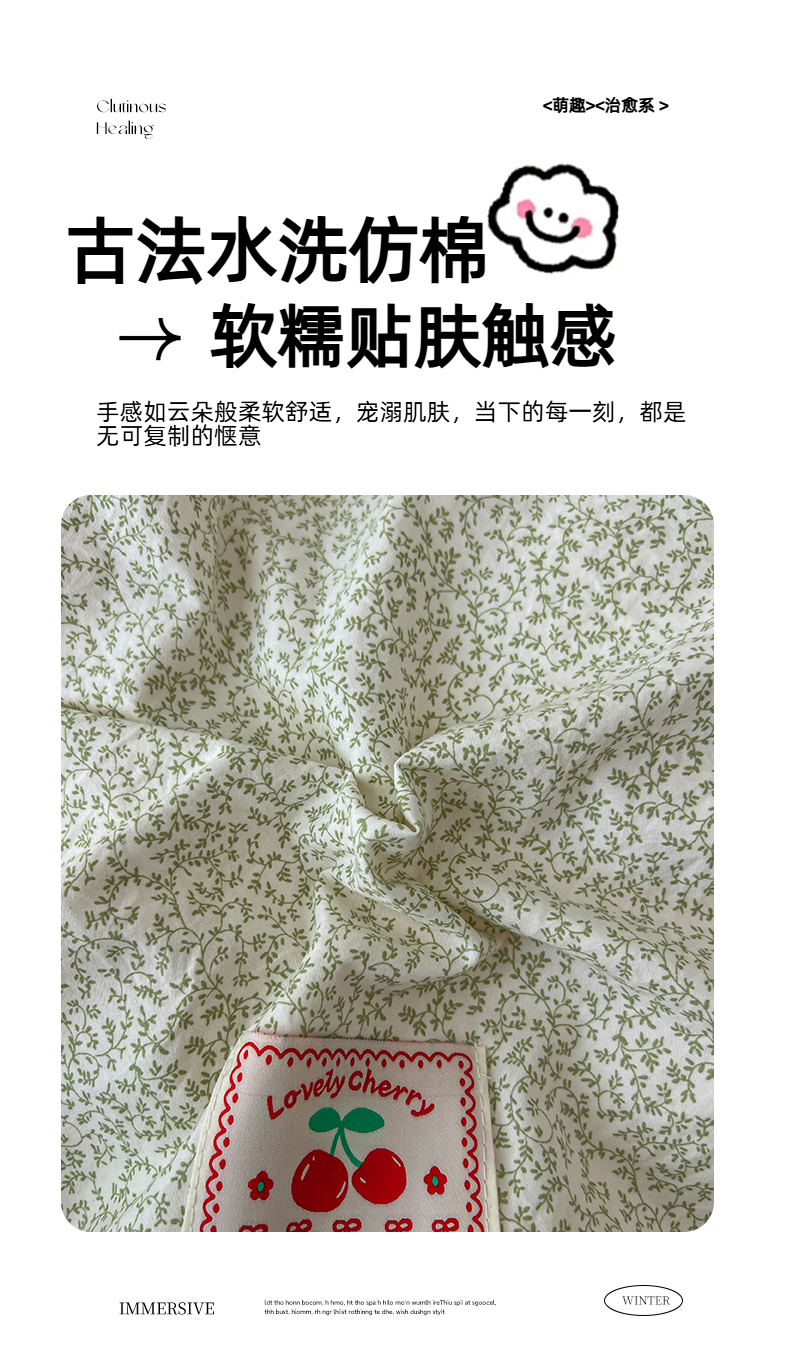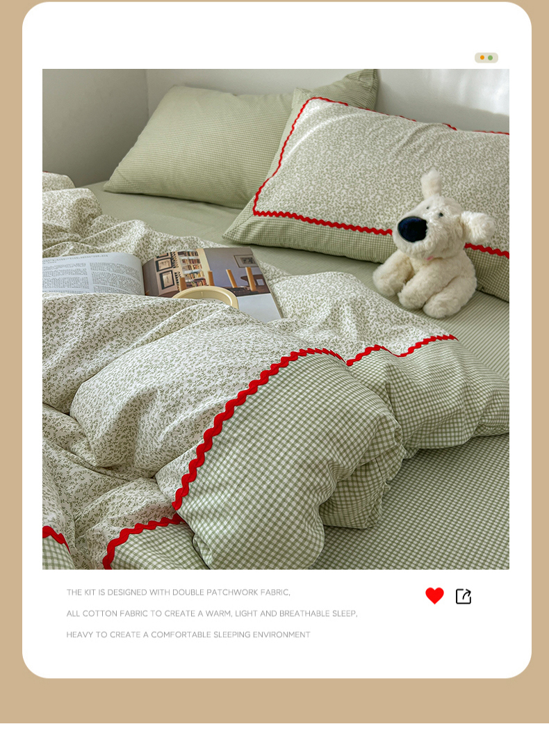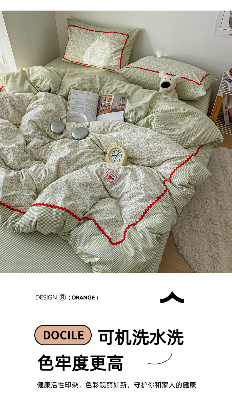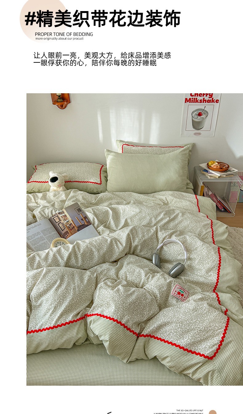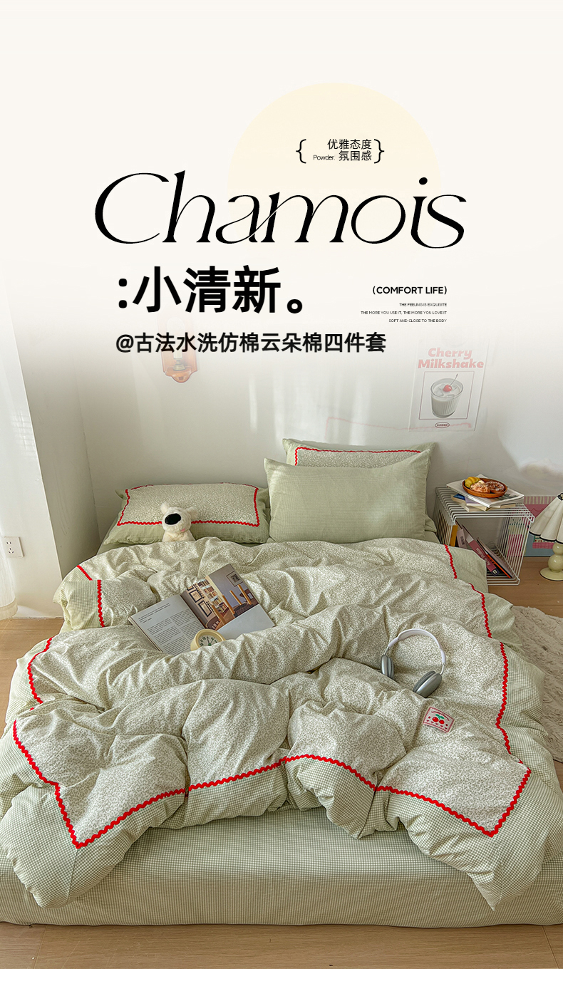 当前位置: 91家纺网 > 商品网购 > 床品套件 > 四件套 > 全棉普通四件套 > 睡美美家纺 2026新款古法水洗贴布格纹碎花云朵棉四件套-格纹小碎花 格纹小碎花--青柠