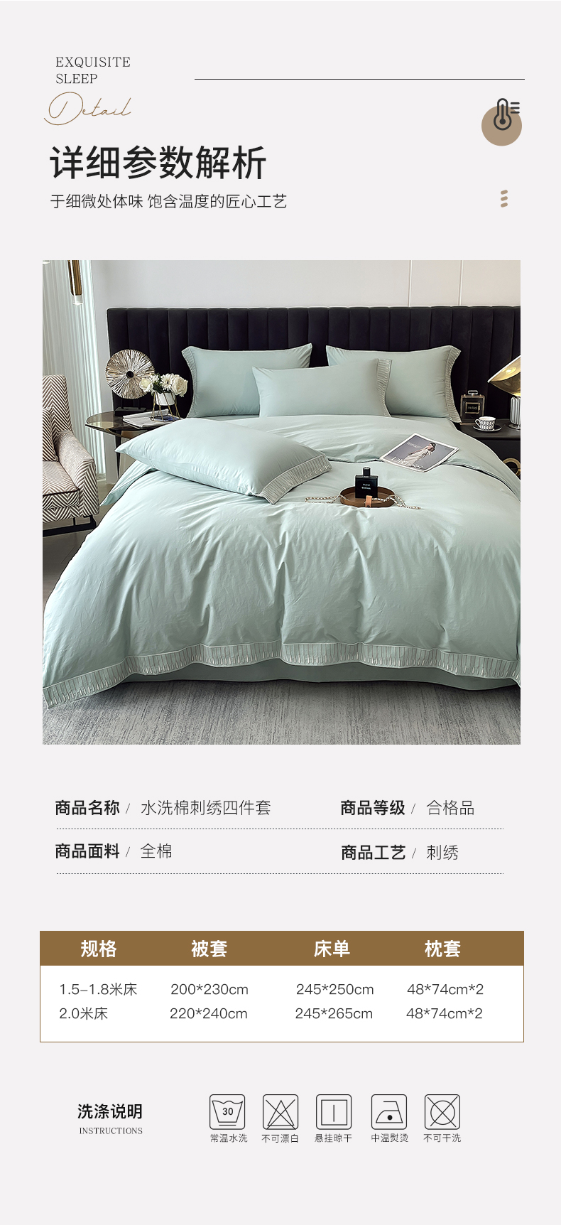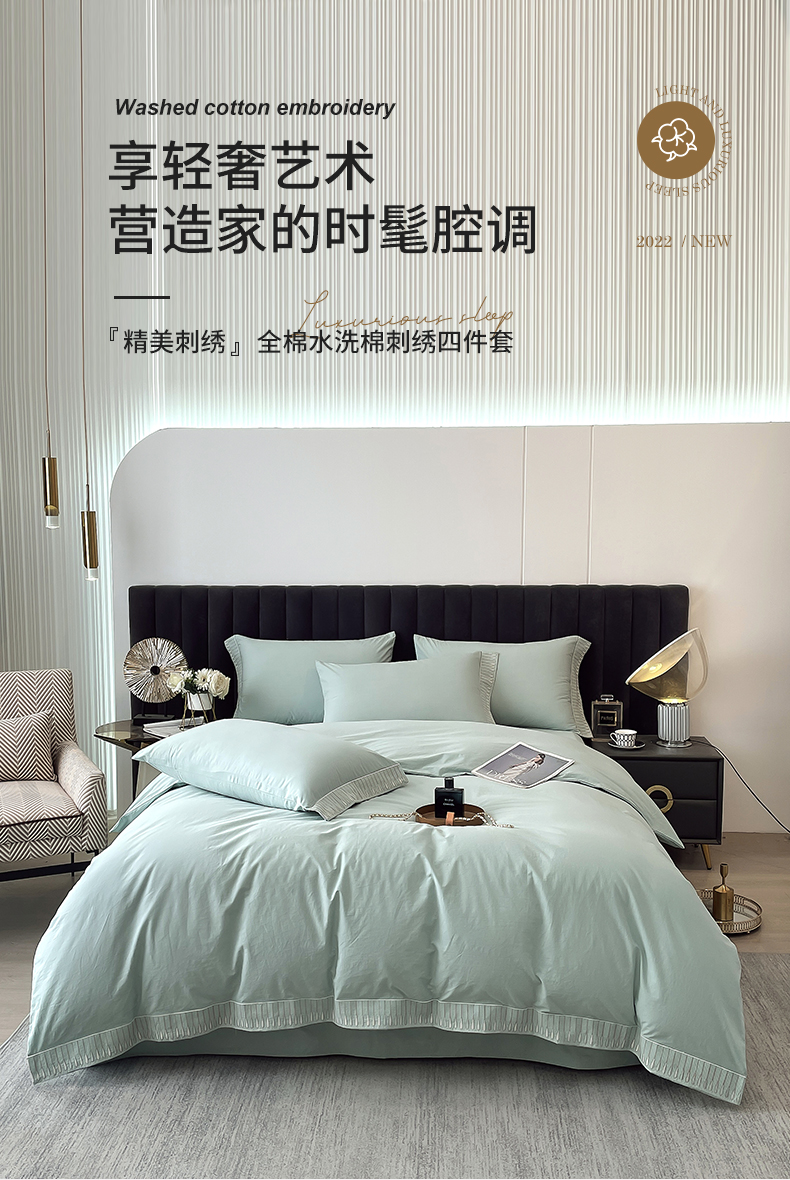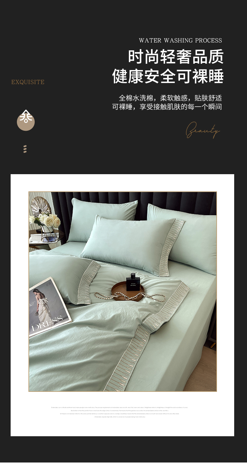 商品名称:拼社家纺 2026新款A类色织全棉水洗棉四件套纯棉四件套刺绣床上用品-黛妮卡系列 黛妮卡-水湖绿