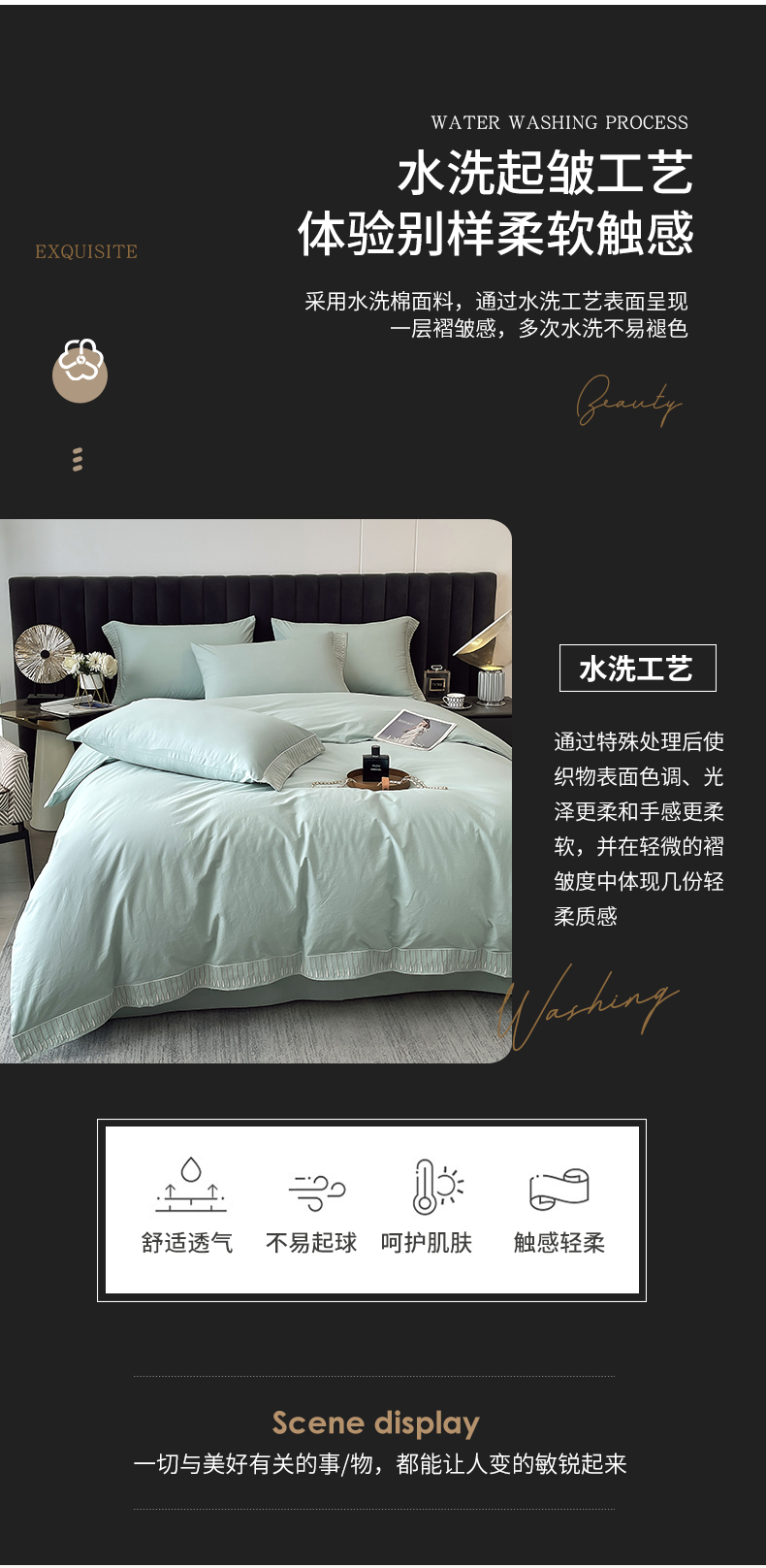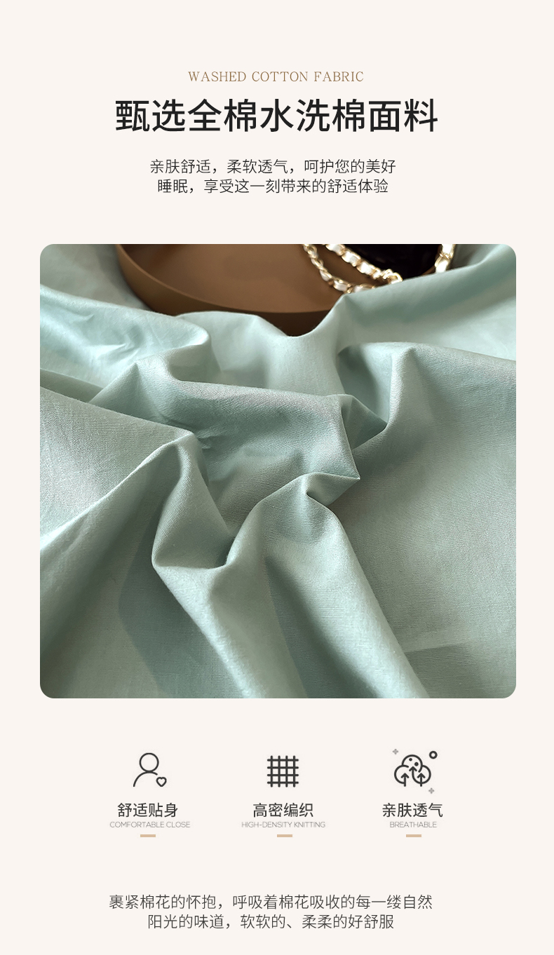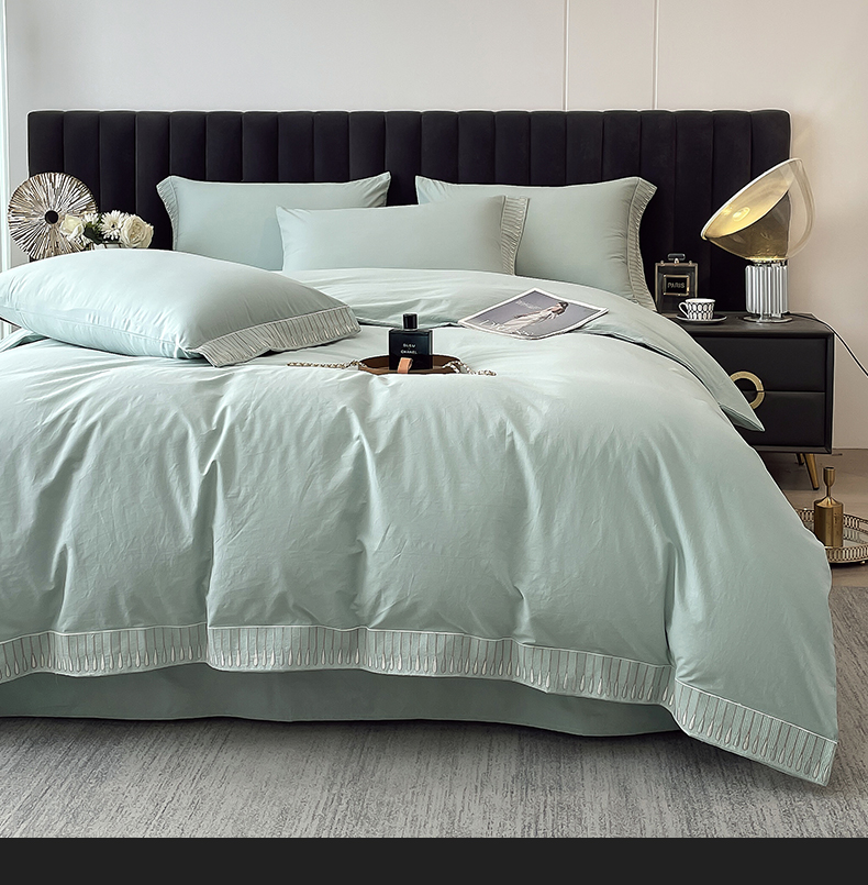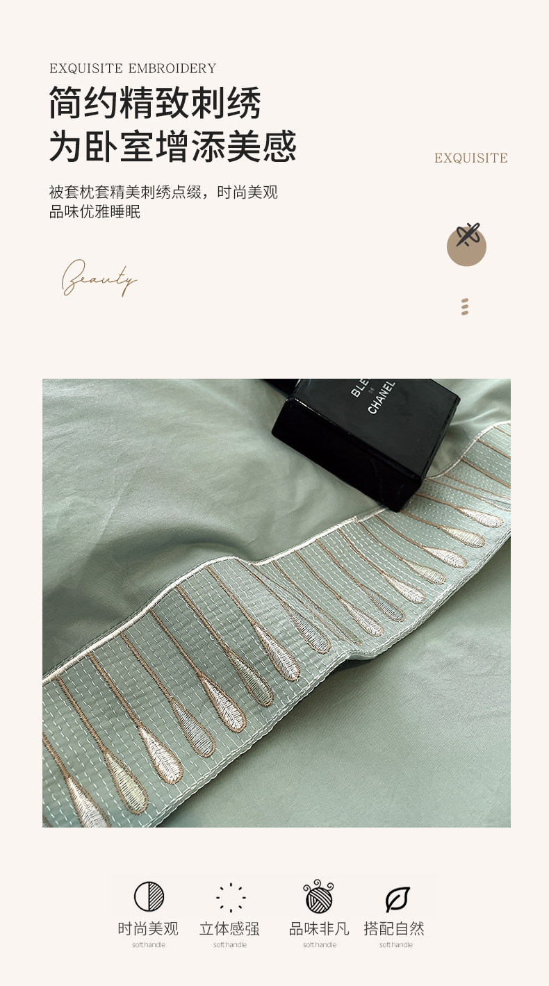 商品名称:拼社家纺 2026新款A类色织全棉水洗棉四件套纯棉四件套刺绣床上用品-黛妮卡系列 黛妮卡-水湖绿