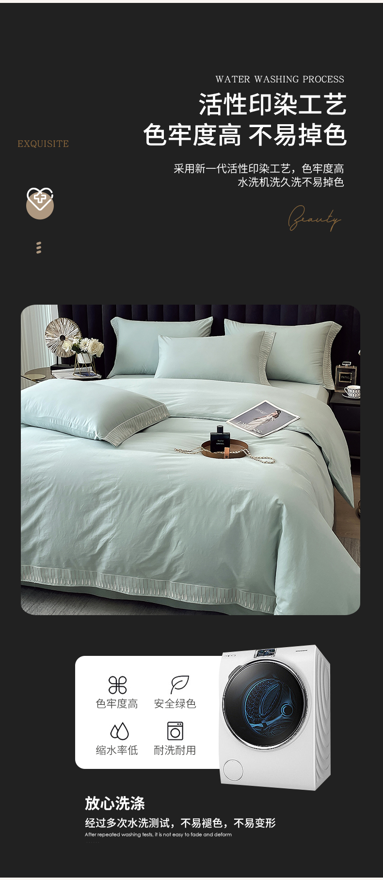 拼社家纺 2026新款A类色织全棉水洗棉四件套纯棉四件套刺绣床上用品-黛妮卡系列 黛妮卡-水湖绿