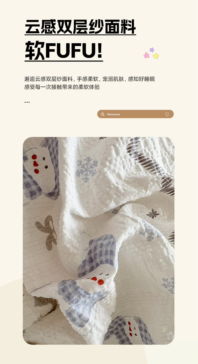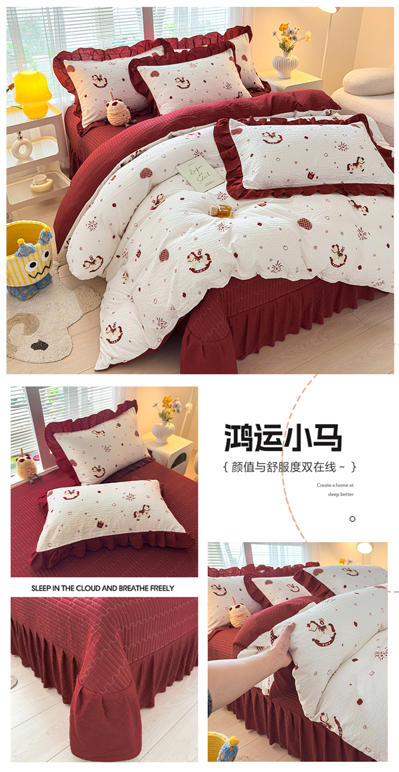 (总)民新家纺 2026新款泡芙双层纱床盖款四件套,鸿运小马,星星人,爱心小马,晨雾花园,乖乖兔,蝴蝶飞舞,蝴蝶结-灰,水彩玫瑰,小雪人-红,小雪人-蓝,心心相印,幸运星,仲夏之梦,紫梦花语,紫薇花开