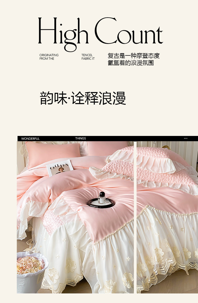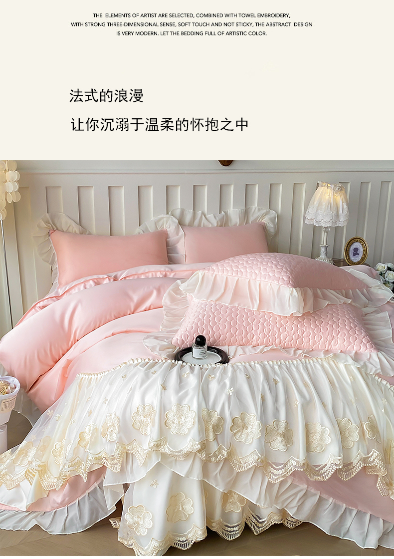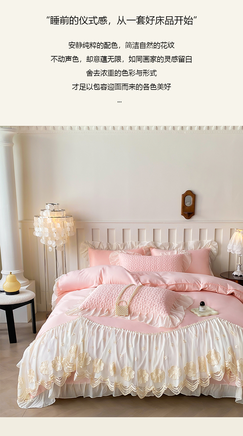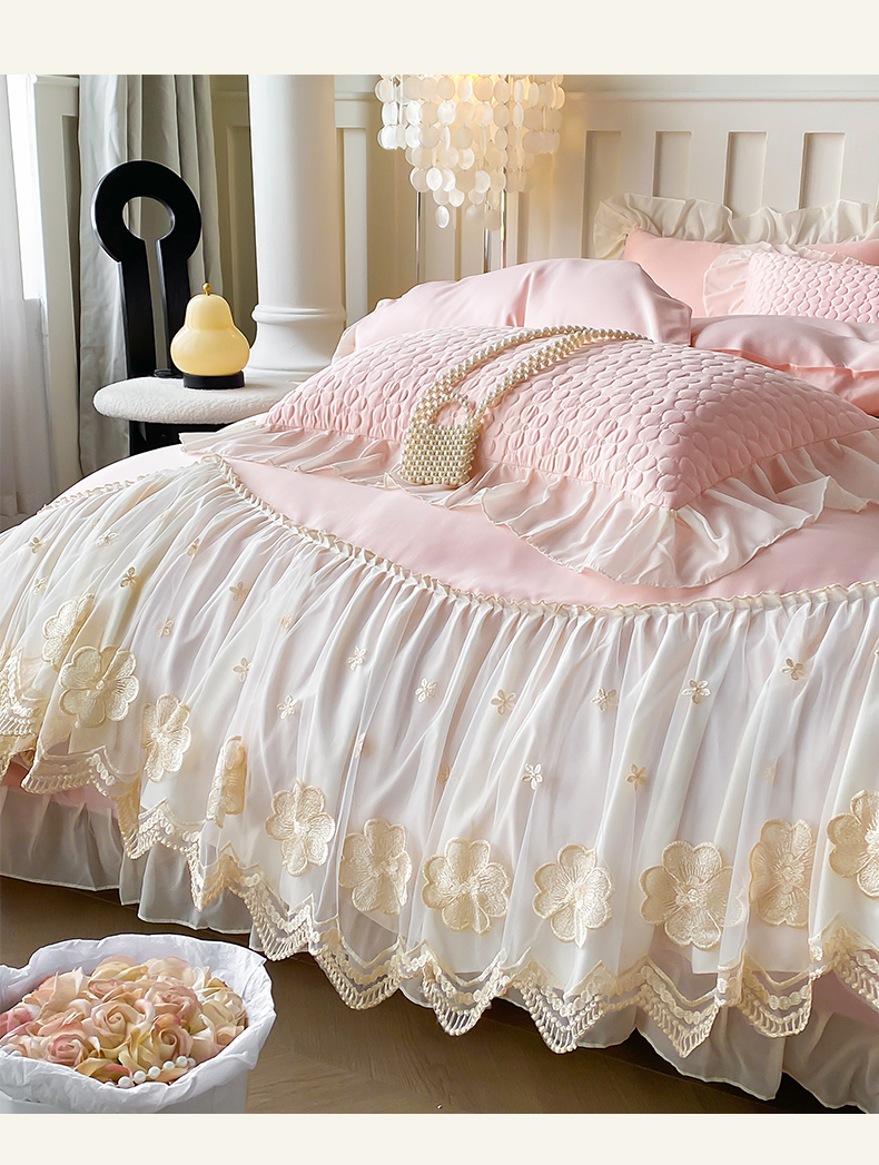当前位置: 91家纺网 > 商品网购 > 床品套件 > 四件套 > 其它四件套 > (总)花香四季家纺 2026新款法式天丝棉蕾丝雪纺仙女风夹棉床裙款四件套