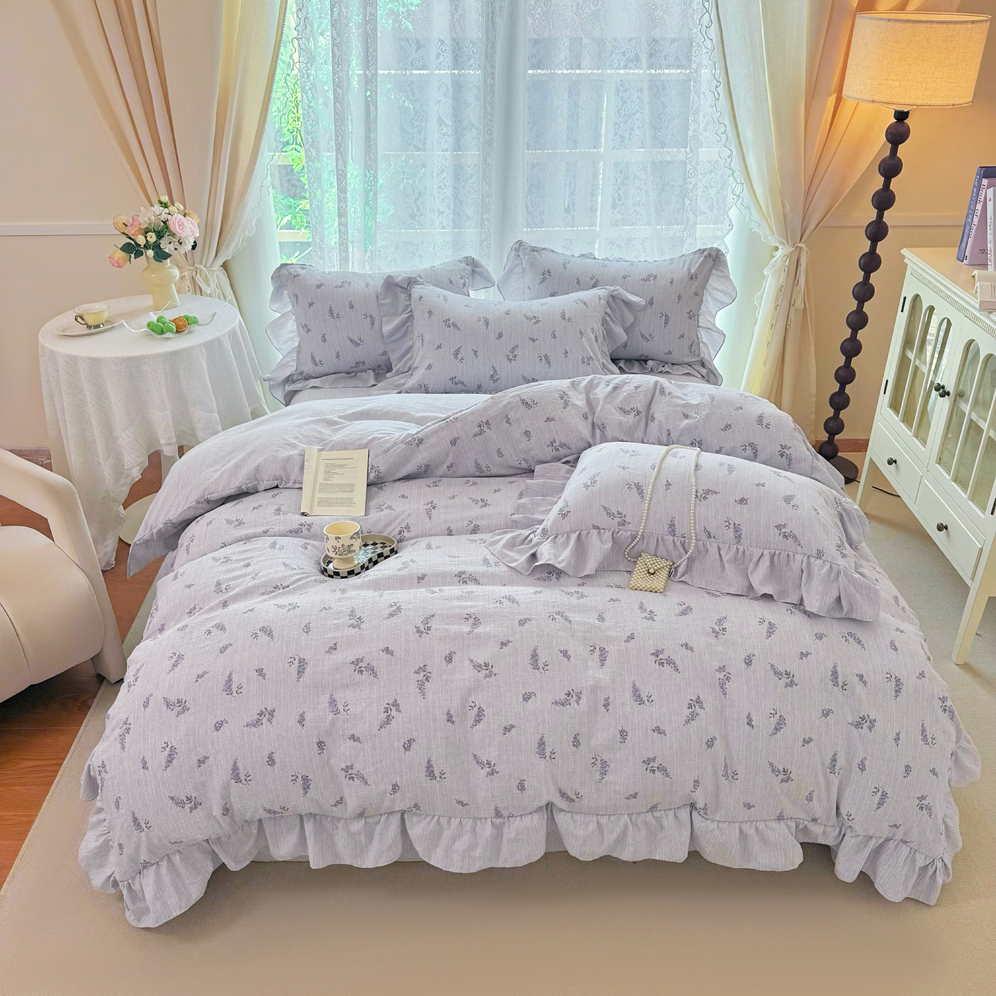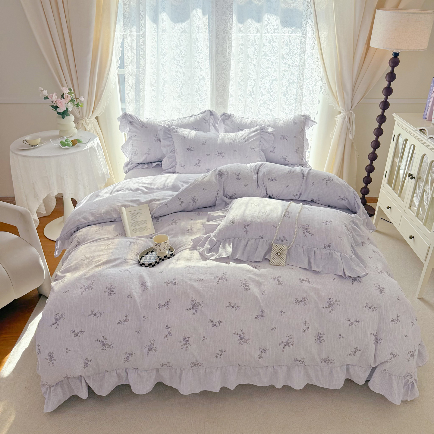 (总)赛丽雅 2026新款法式浪漫花边款公主风荷叶边高级田园风四件套,薄雾玫瑰-温莎紫,海德林-青色,海德林-紫藤色,凯西亚-丁香紫,凯西亚-香槟