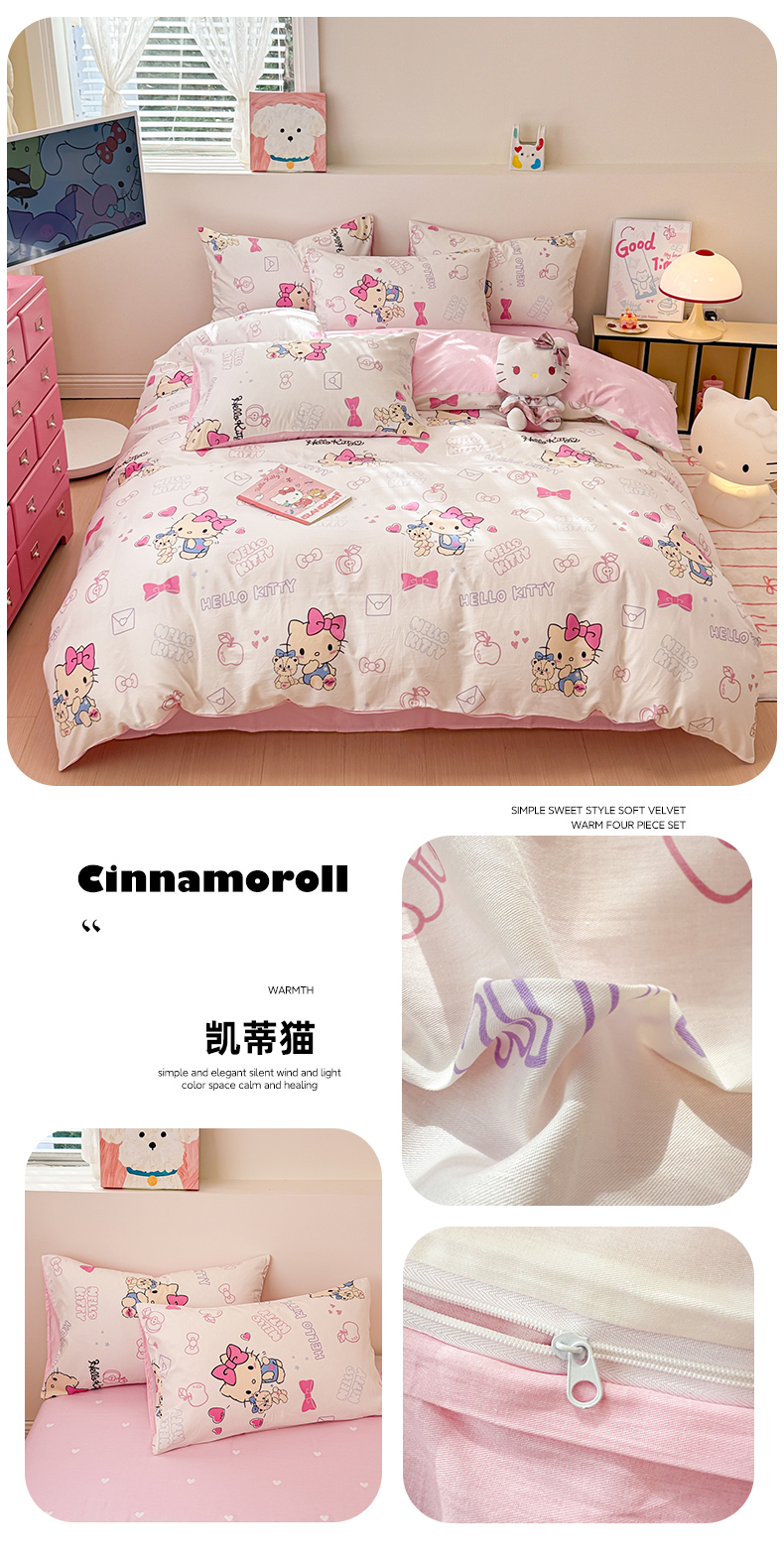 当前位置: 91家纺网 > 商品网购 > 床品套件 > 四件套 > 全棉普通四件套 > 女子家纺 2026新款40支100%纯棉全棉13070斜纹四件套 凯蒂猫
