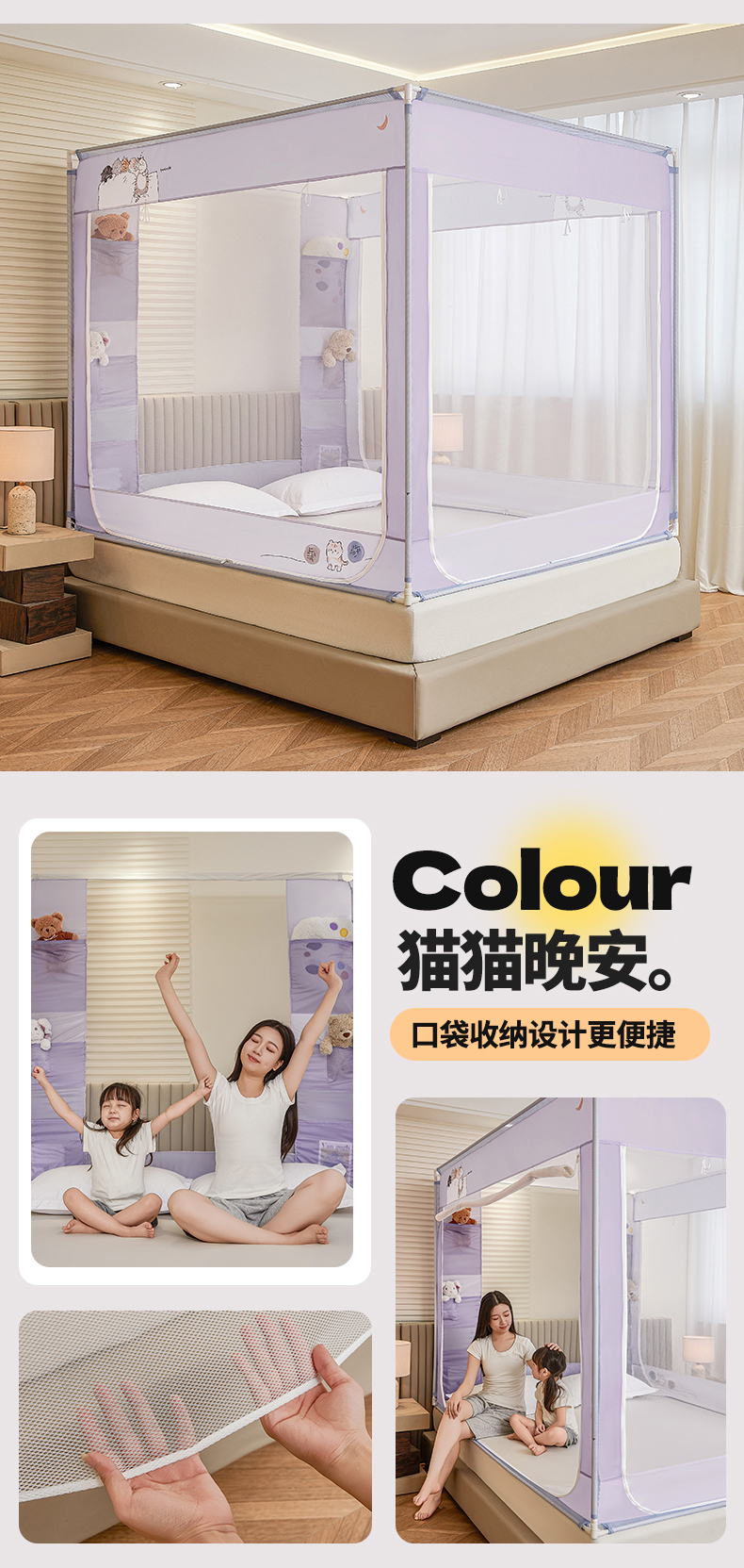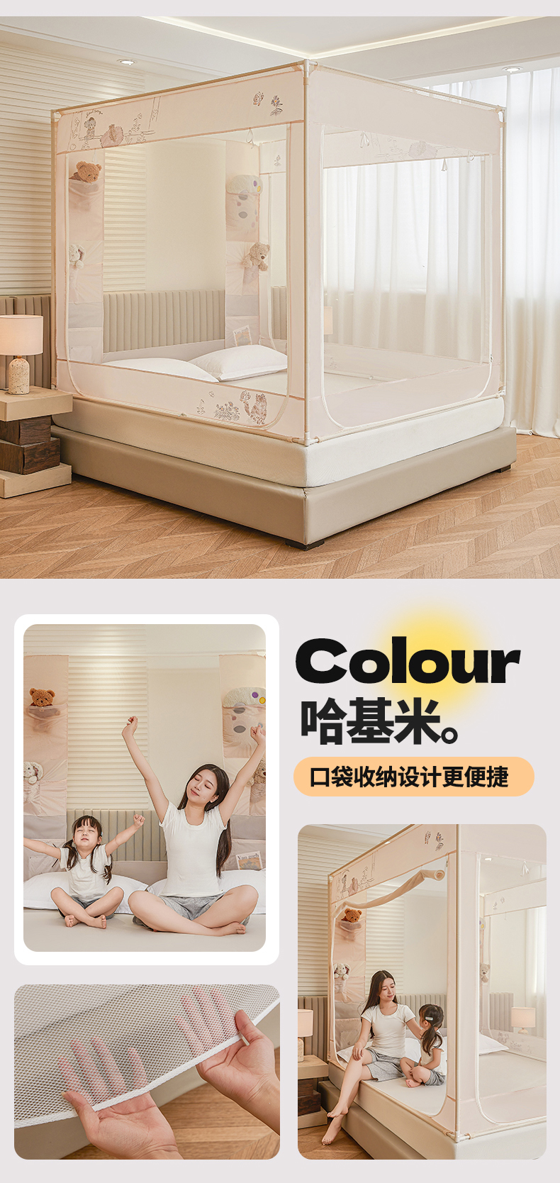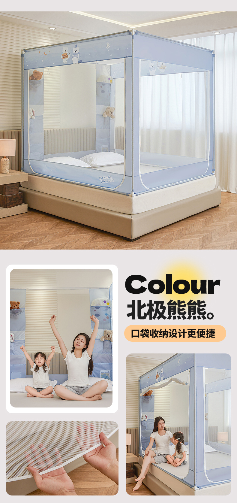 商品名称:(总)青竹苑 2026新款贴布口袋款床笠底坐床蚊帐