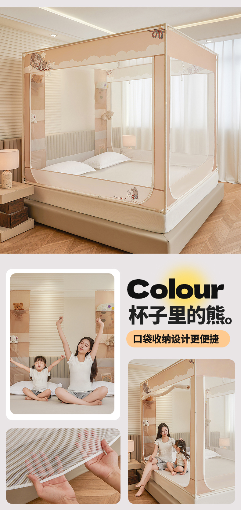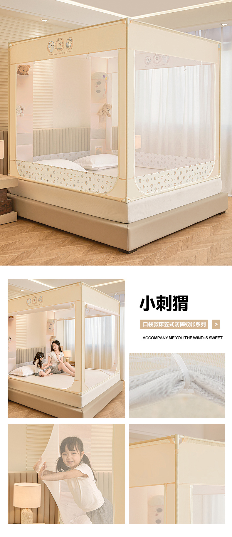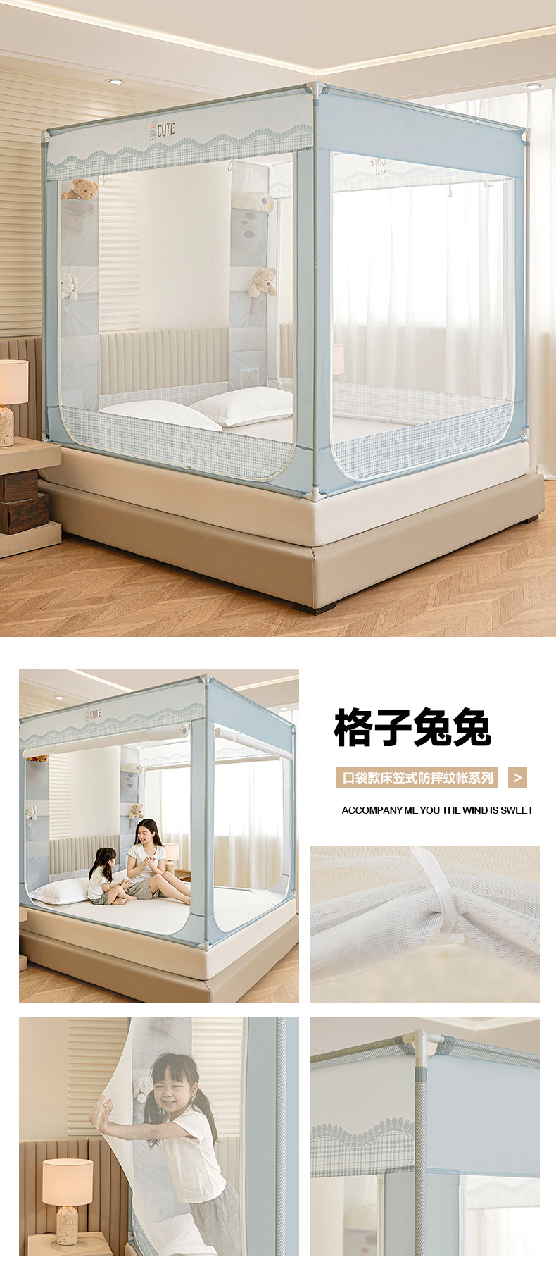 商品名称:(总)青竹苑 2026新款贴布口袋款床笠底坐床蚊帐