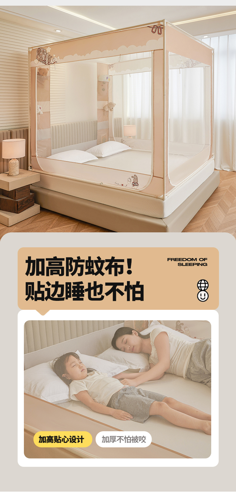 (总)青竹苑 2026新款贴布口袋款床笠底坐床蚊帐