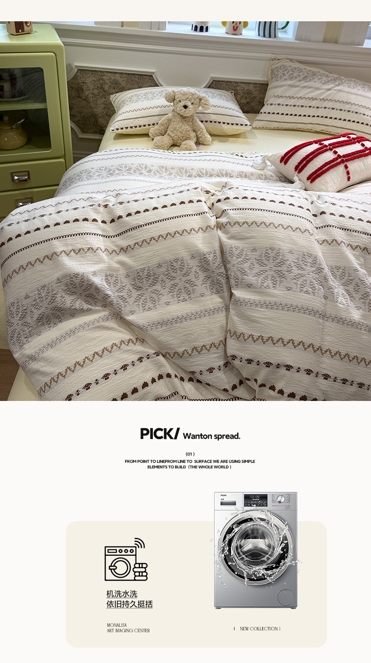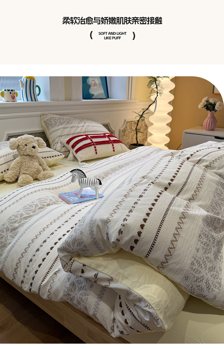 (总)盼季家纺 2026新款简单款105g泡芙棉印花四件套-费尔岛