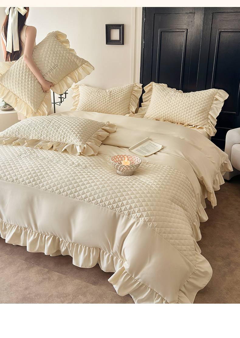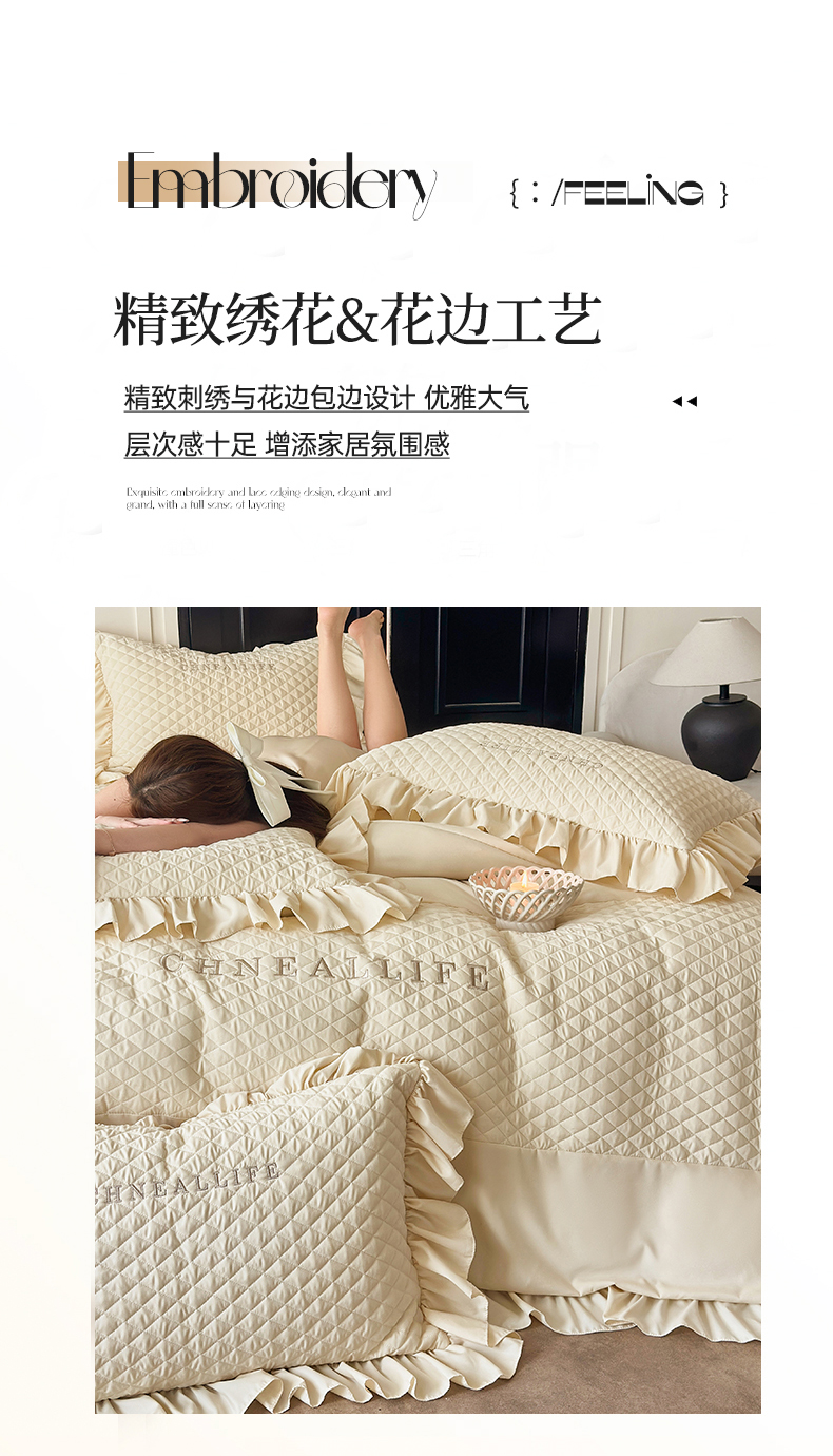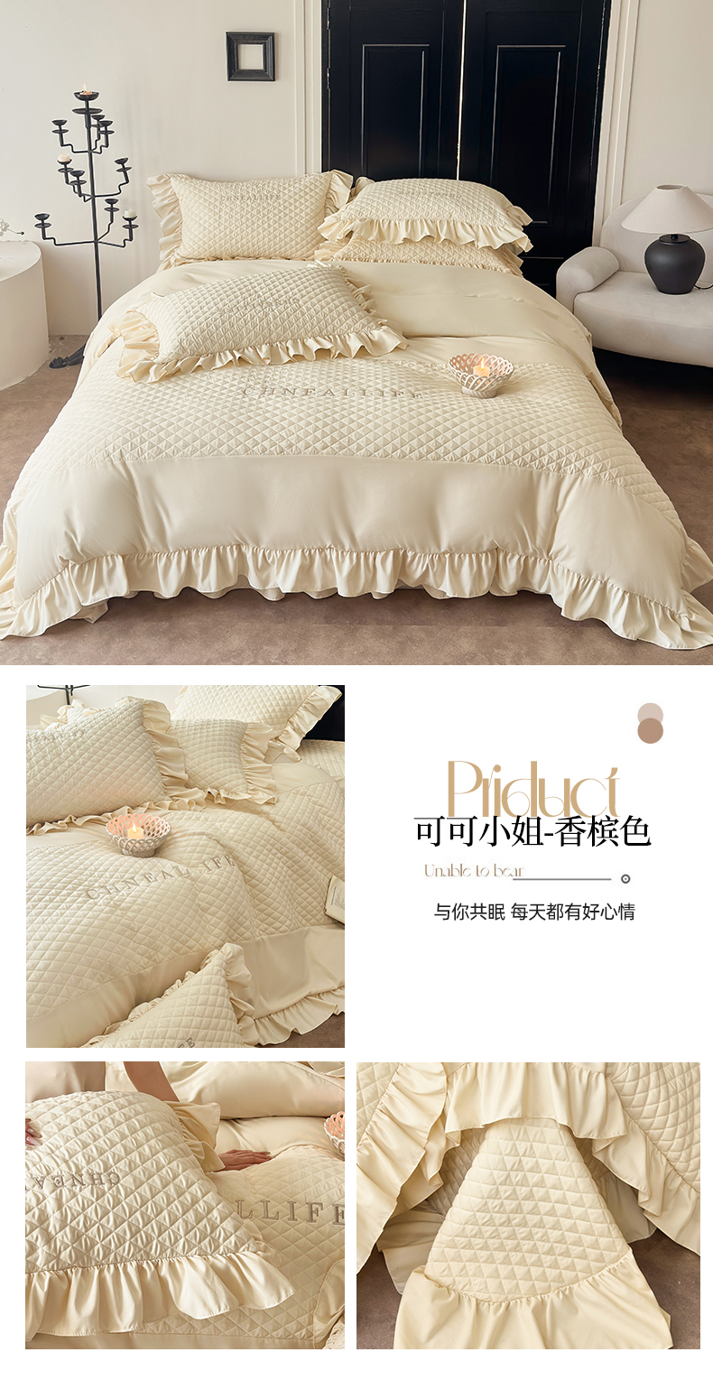 当前位置: 91家纺网 > 商品网购 > 床品套件 > 四件套 > 化纤活性四件套 > 豪美鑫 2026新款绗缝绣花四件套-可可小姐系列 可可小姐-香槟色