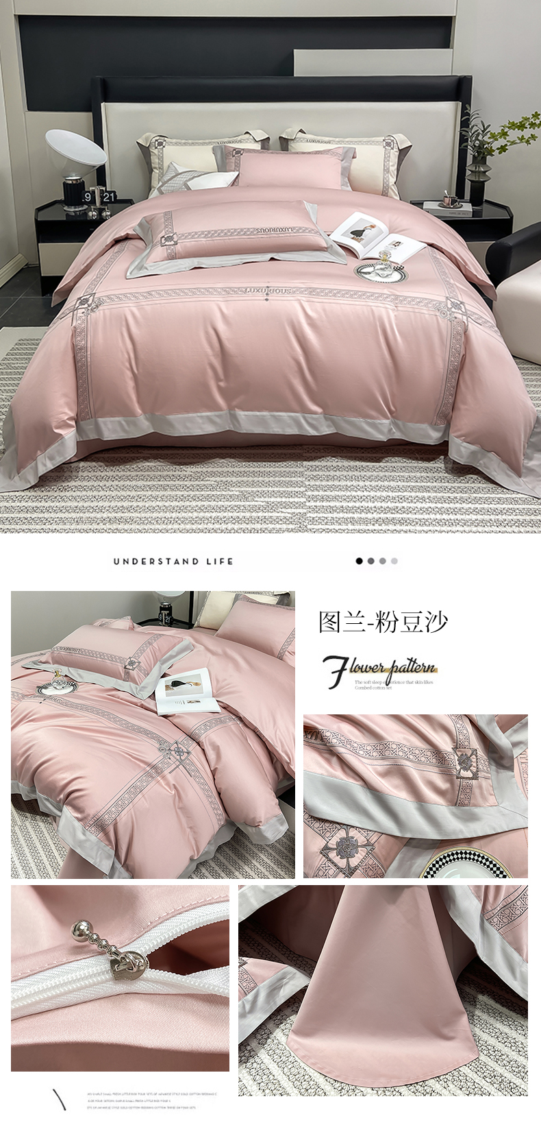 (总)家居1号家纺 2026新款50双股轻奢长绒棉刺绣四件套-图兰,图兰-粉豆沙,图兰-高级灰,图兰-卡其橙,图兰-奶白,图兰-香槟金