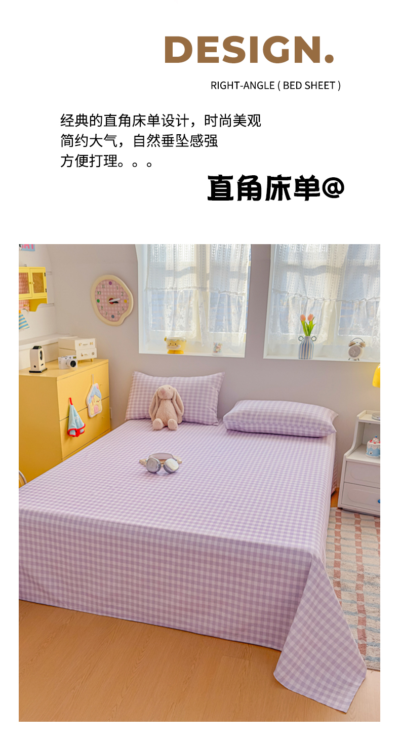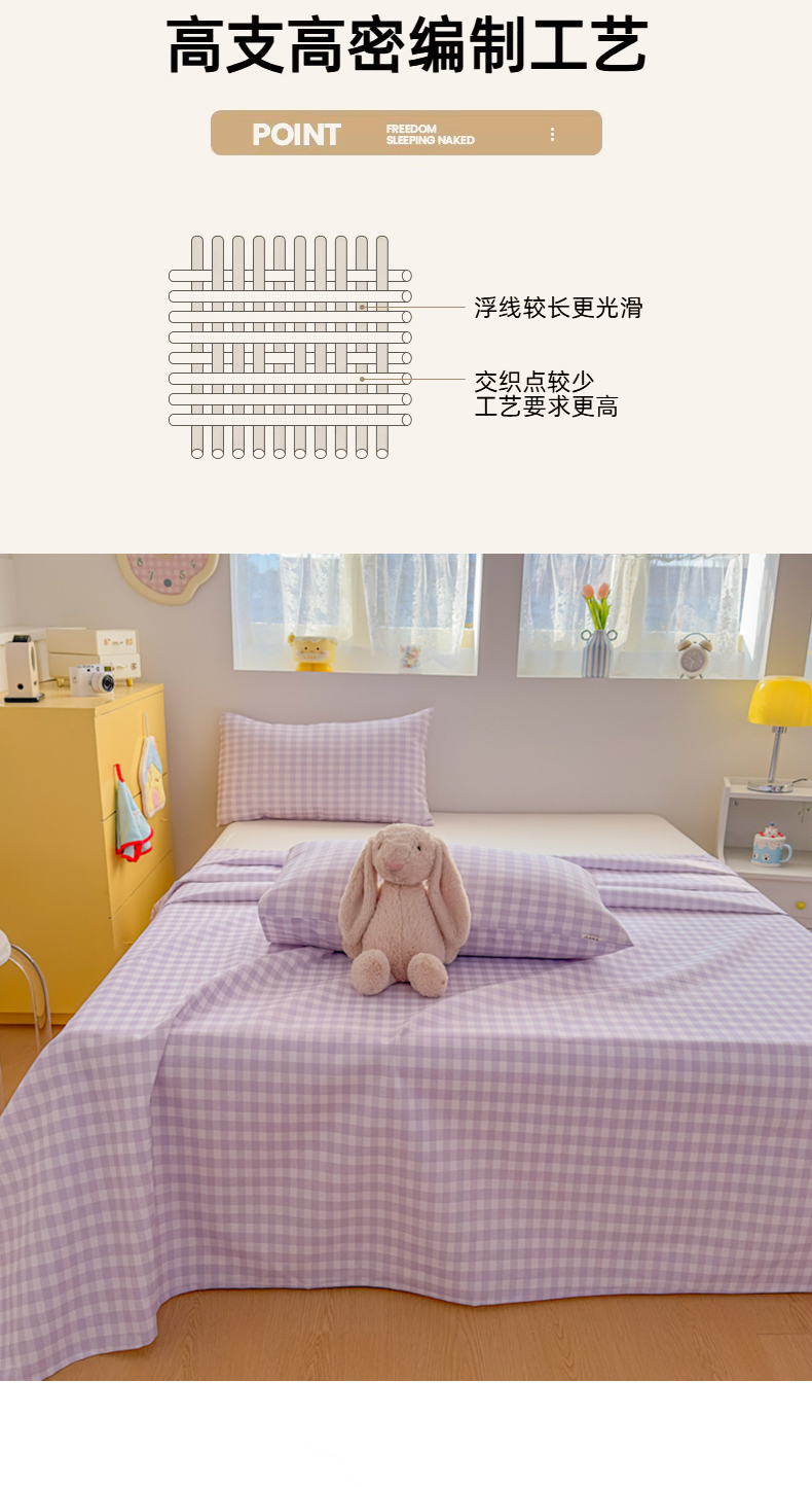 • 91家纺网 家纺一手货源 找家纺 爱彼家纺 2026新款无印格子分老粗布床单软凉席床单枕套三件套新升级细沙-格子系列一 格子紫