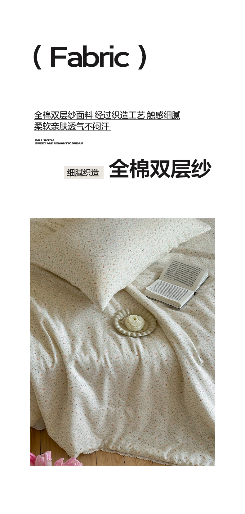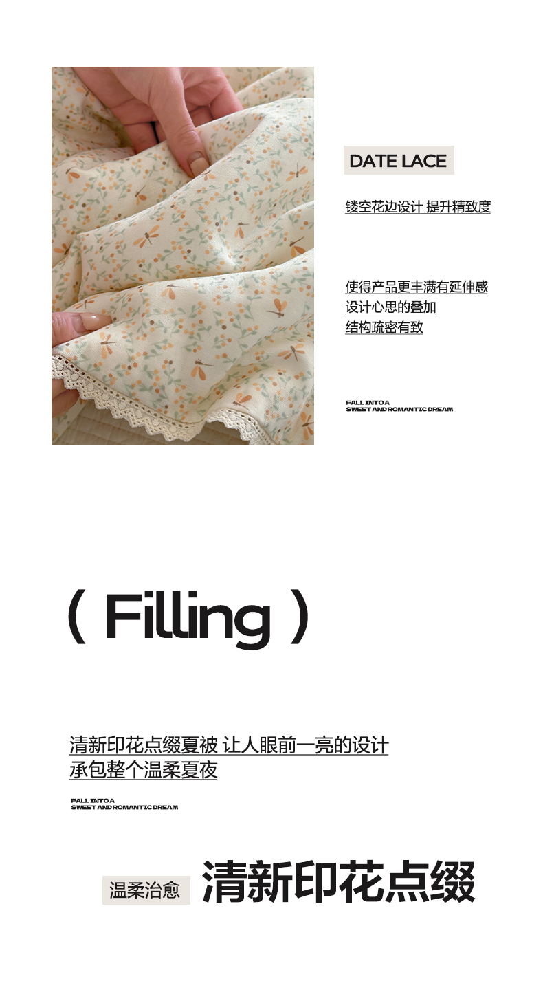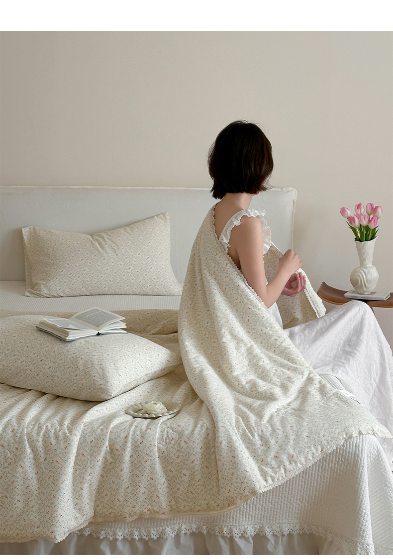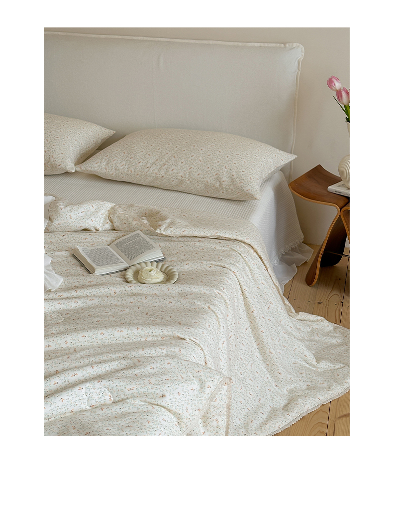 (总)一加一 2026新款复古碎花双层纱大豆夏被夏凉被空调被-纱边花眠,暗香,芬芳,花团锦簇,盛夏,叶影,绽放