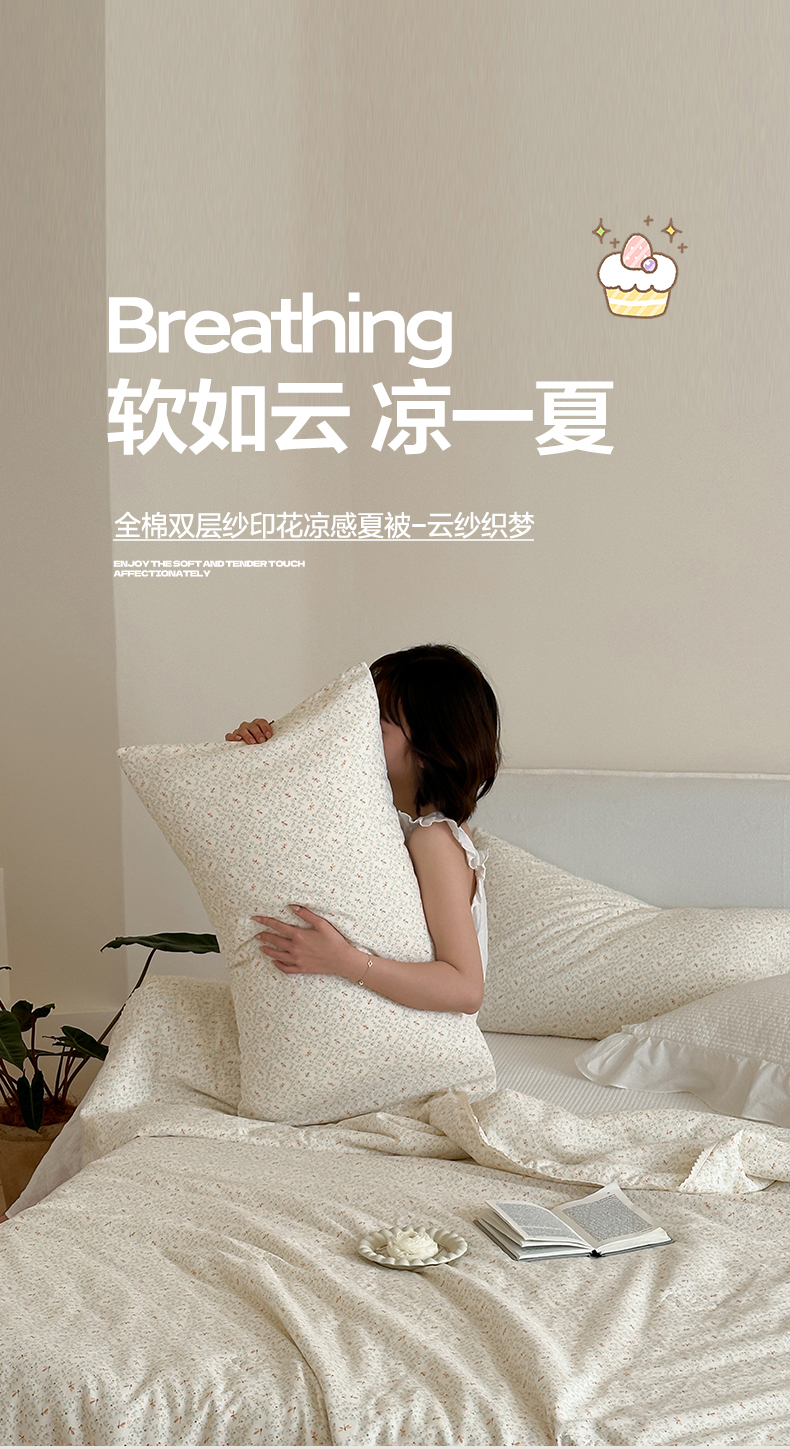 一加一 2026新款全棉双层纱印花凉感夏被-云纱织梦 千野