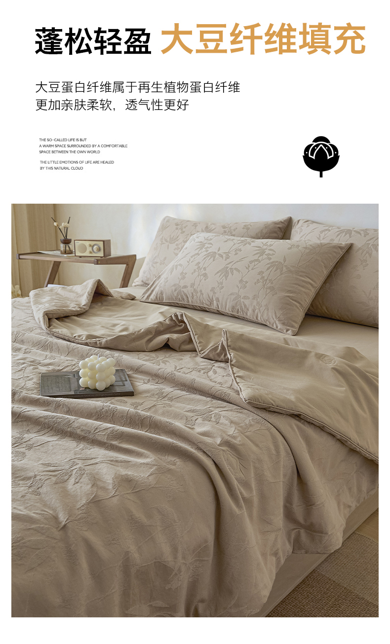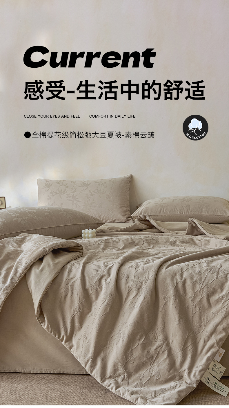 一加一 2026新款全棉提花级简松弛大豆夏被-素棉云皱 森语集