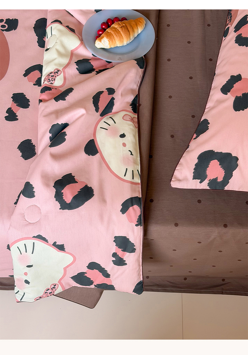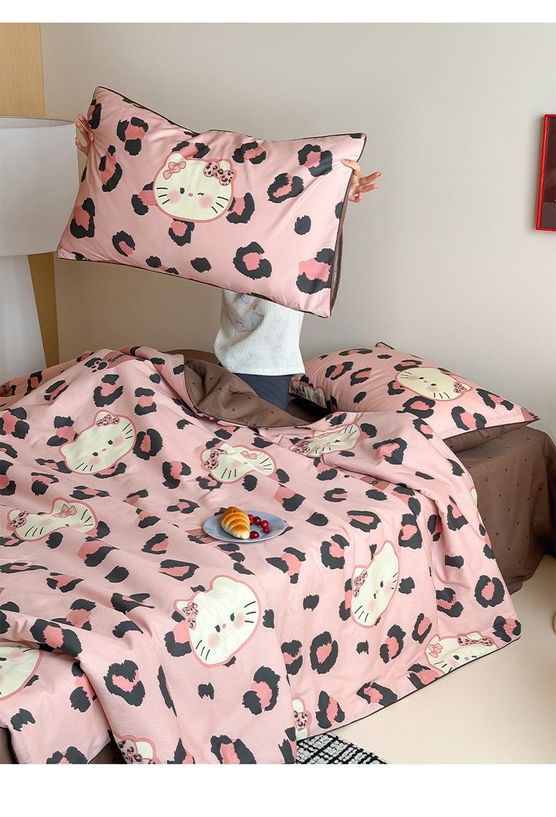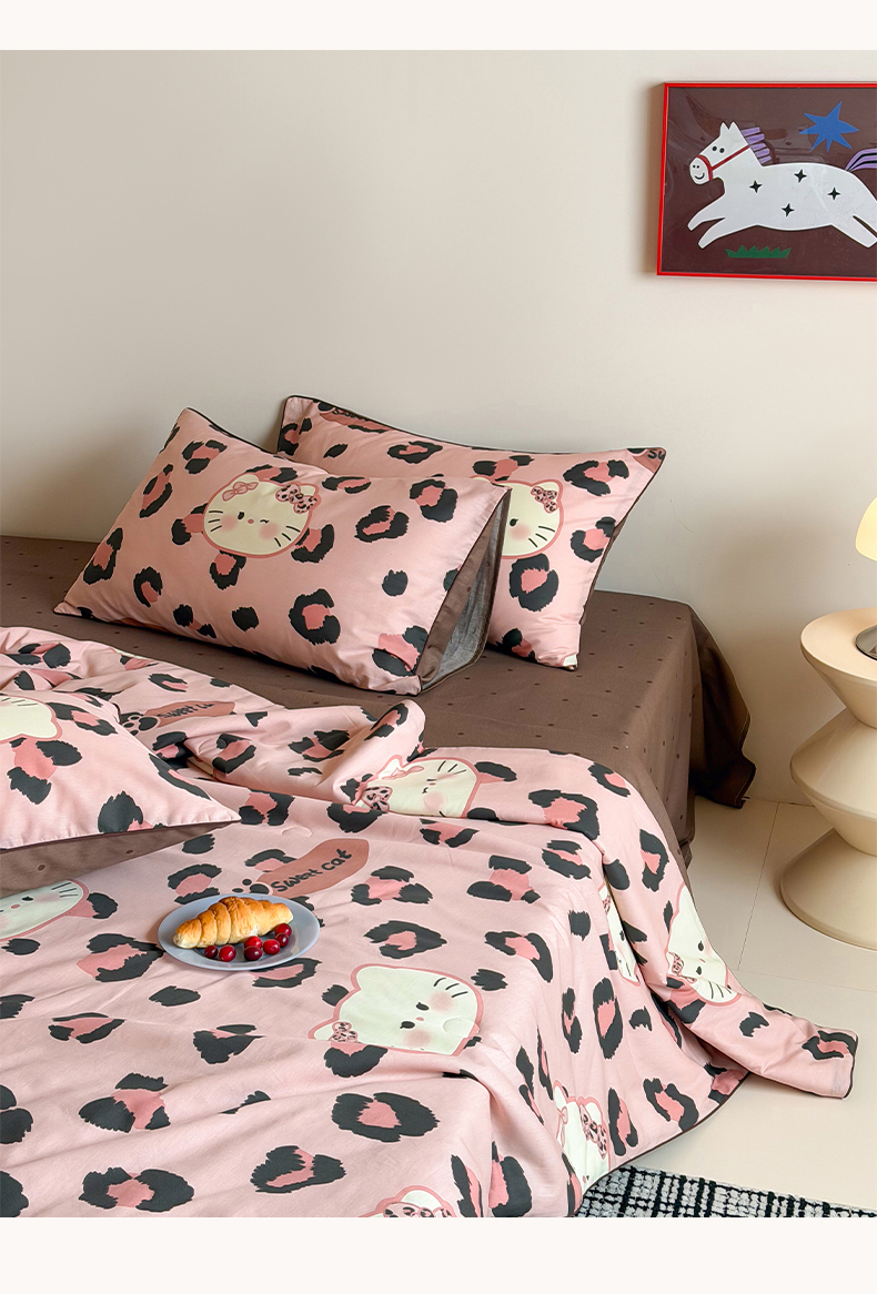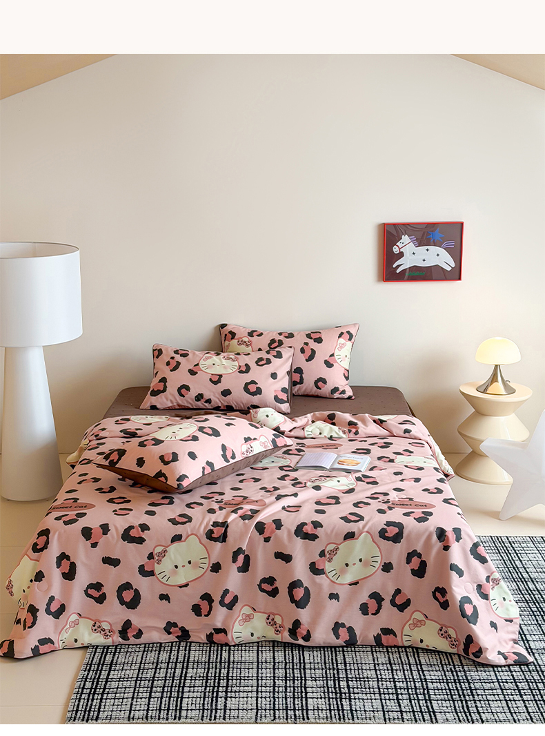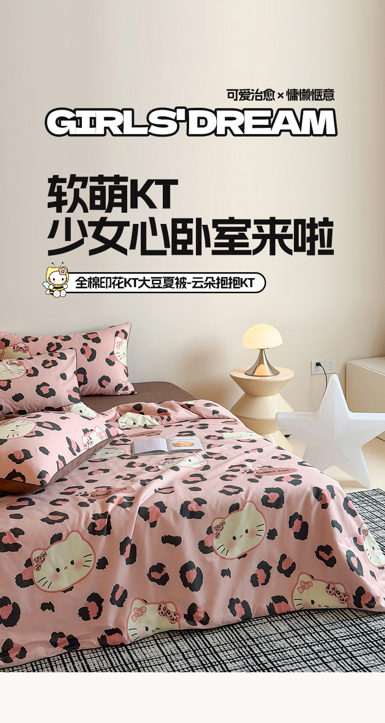 • 91家纺网 家纺一手货源 找家纺 一加一 2026新款全棉印花KT大豆夏被-云朵抱抱KT 粉豹KT