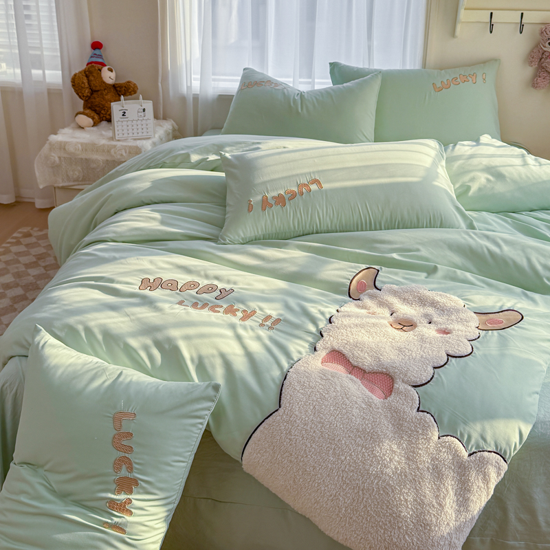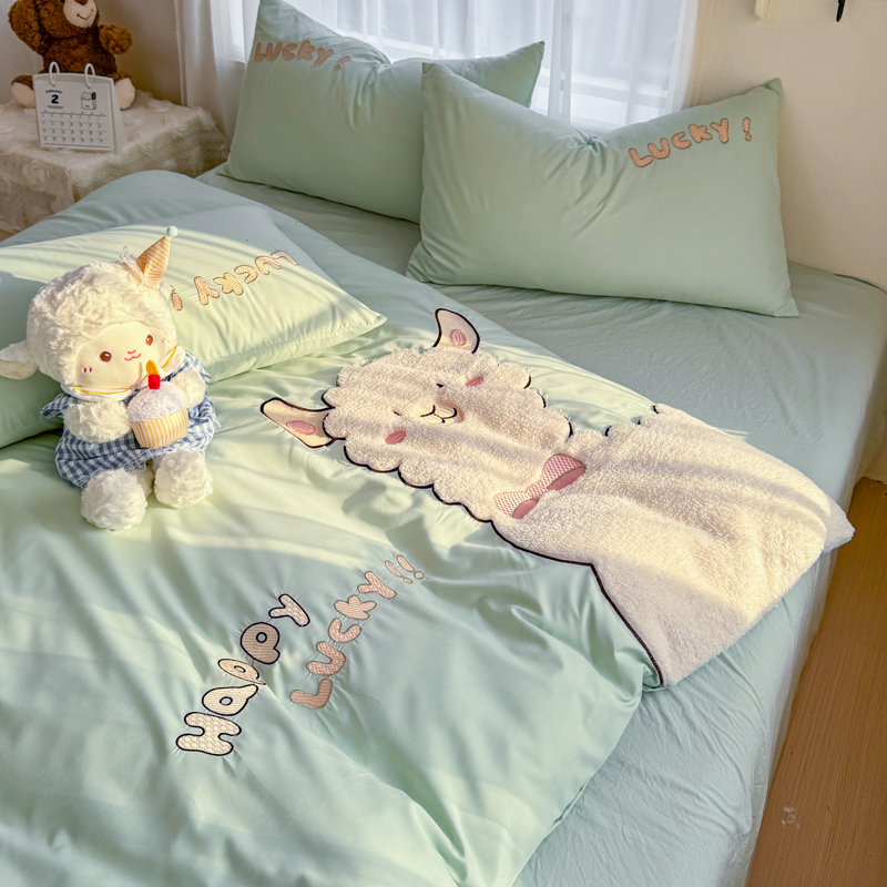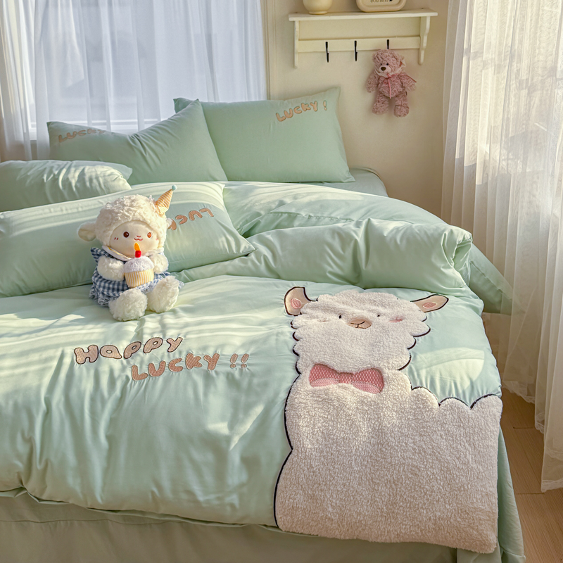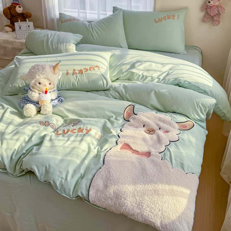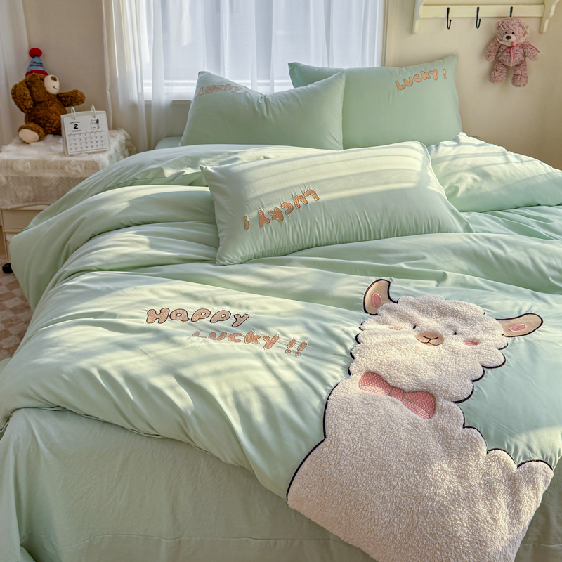 橘子家 2026新款卡通绣花四件套 咩咩羊