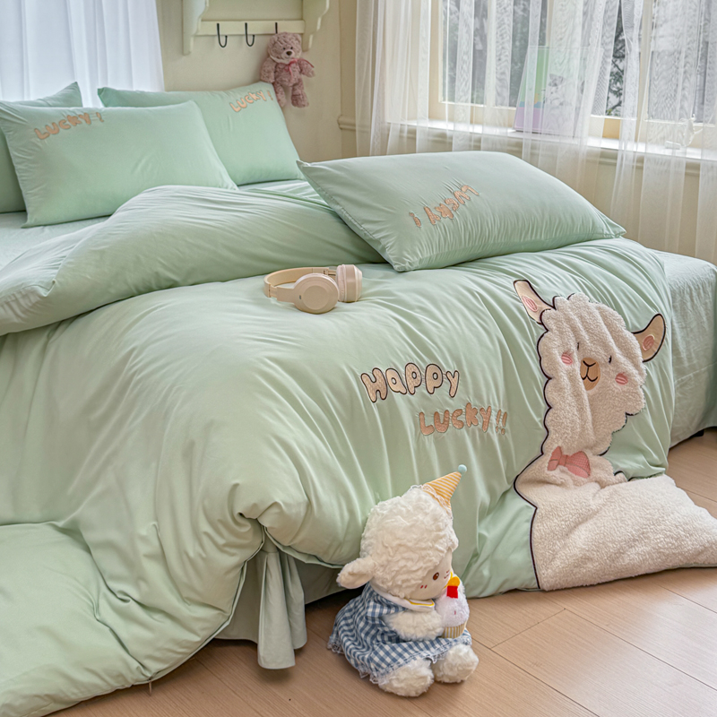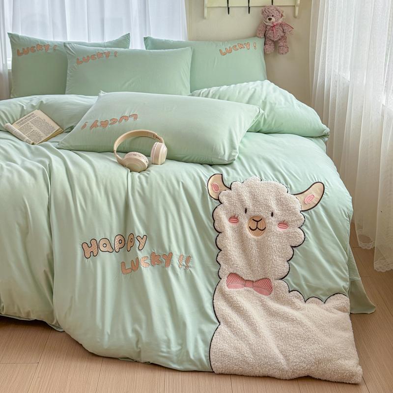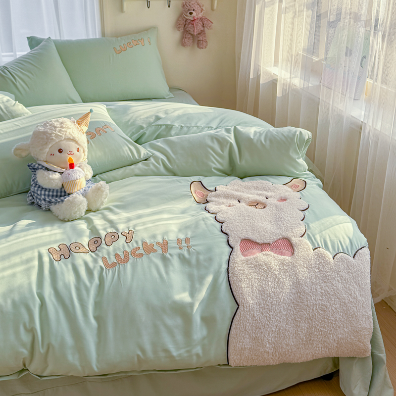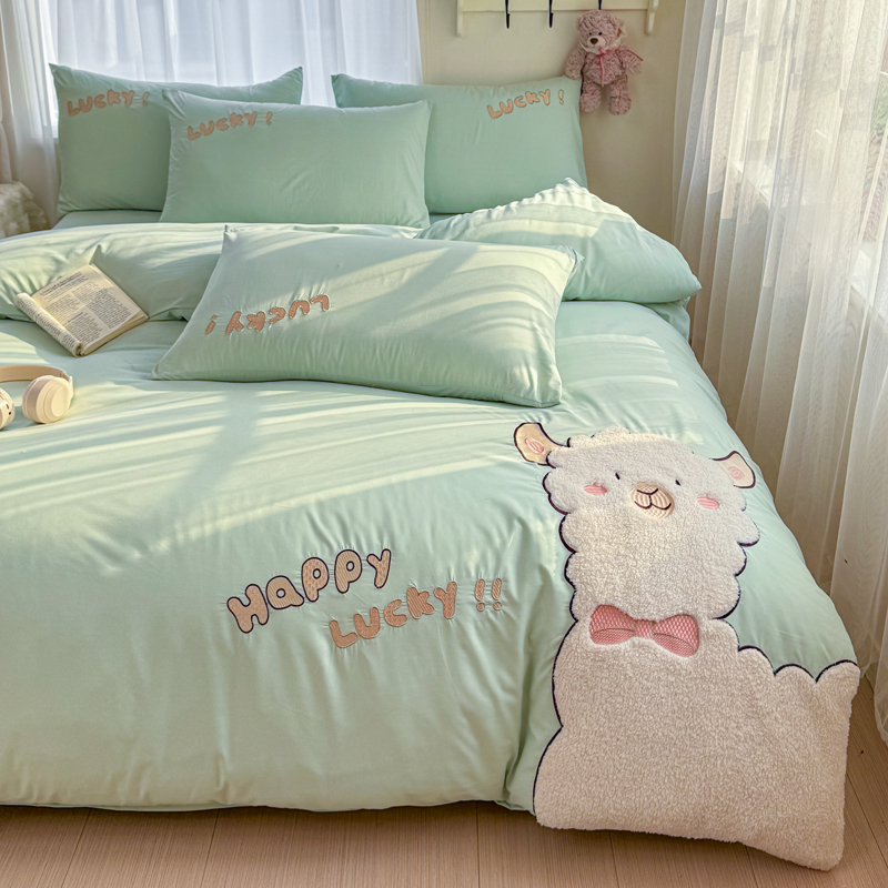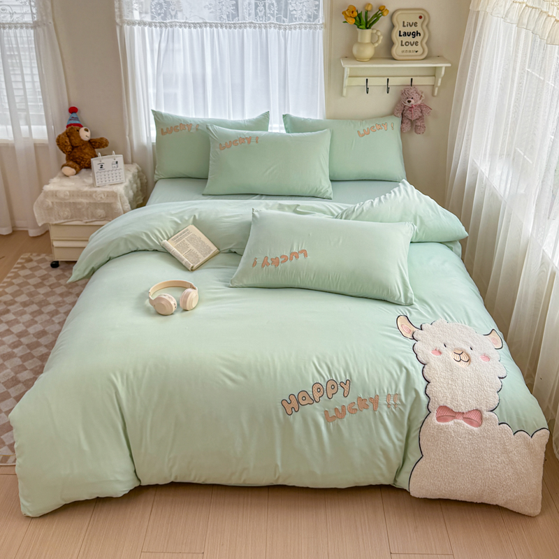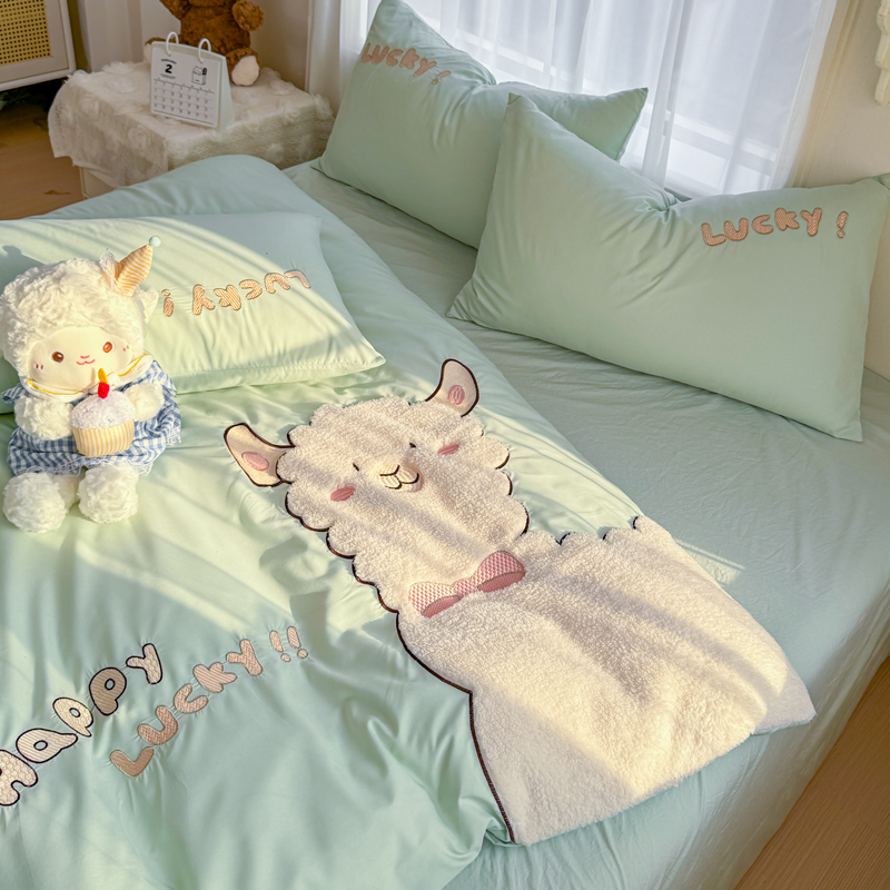 橘子家 2026新款卡通绣花四件套 咩咩羊