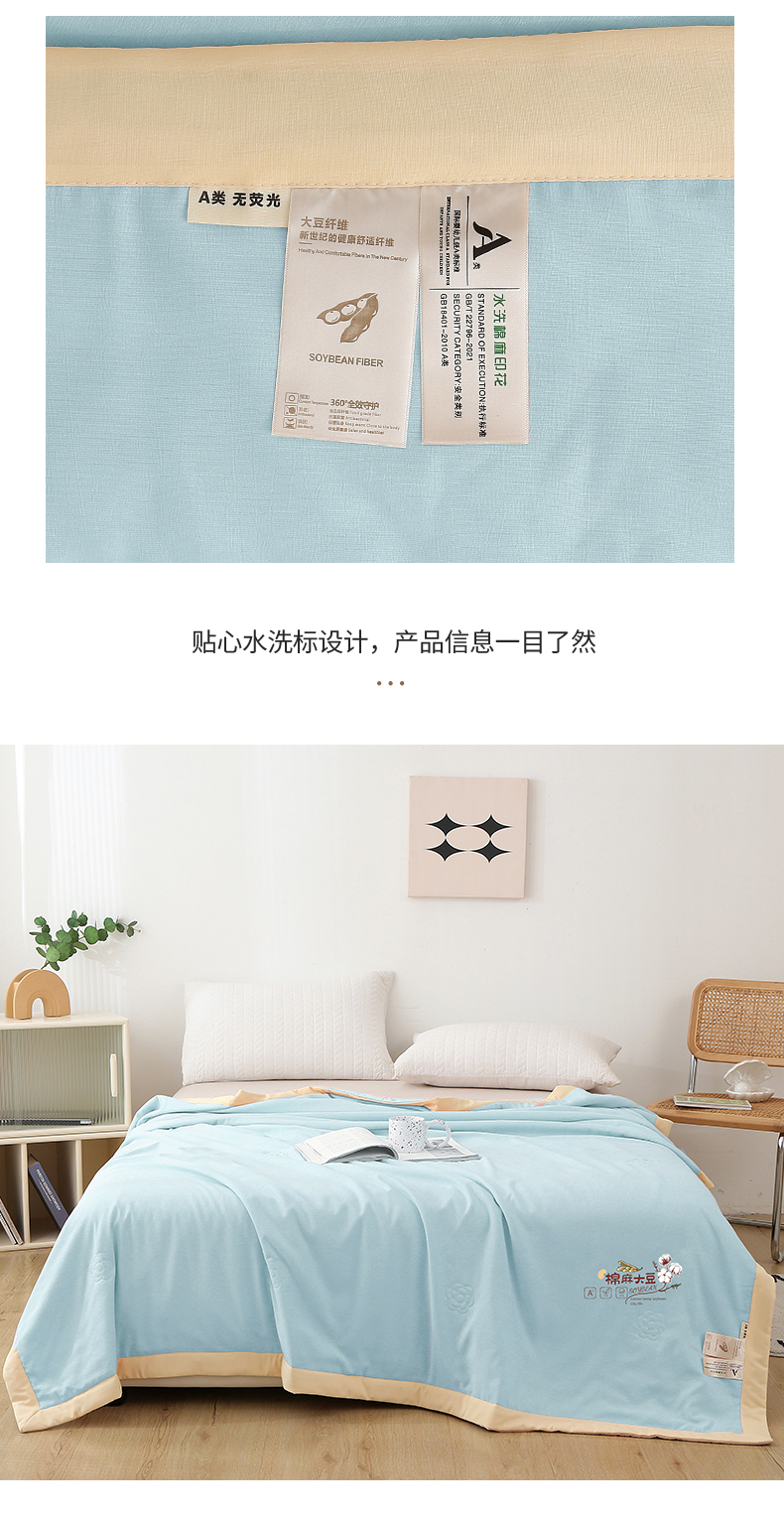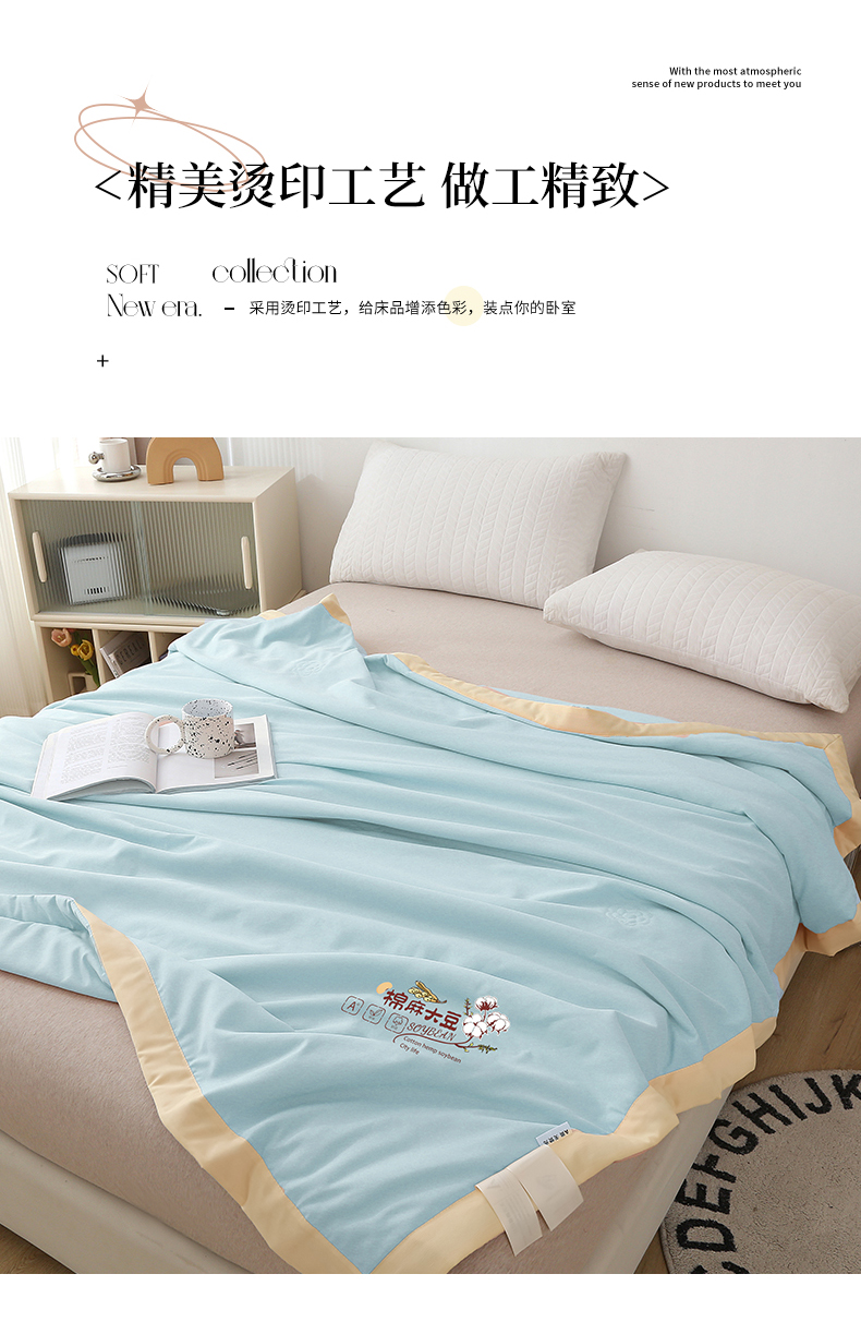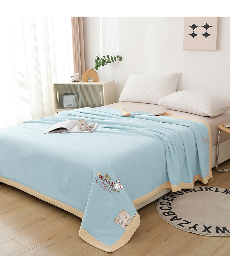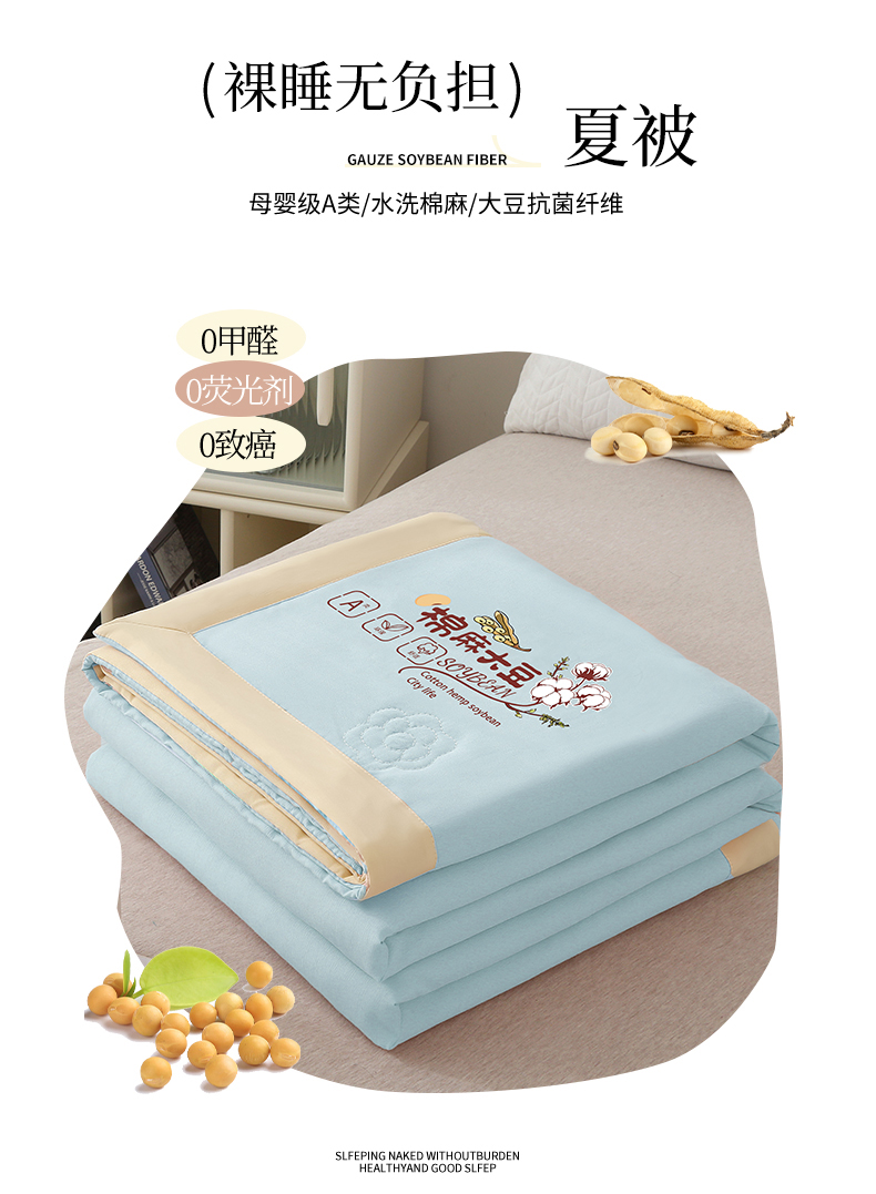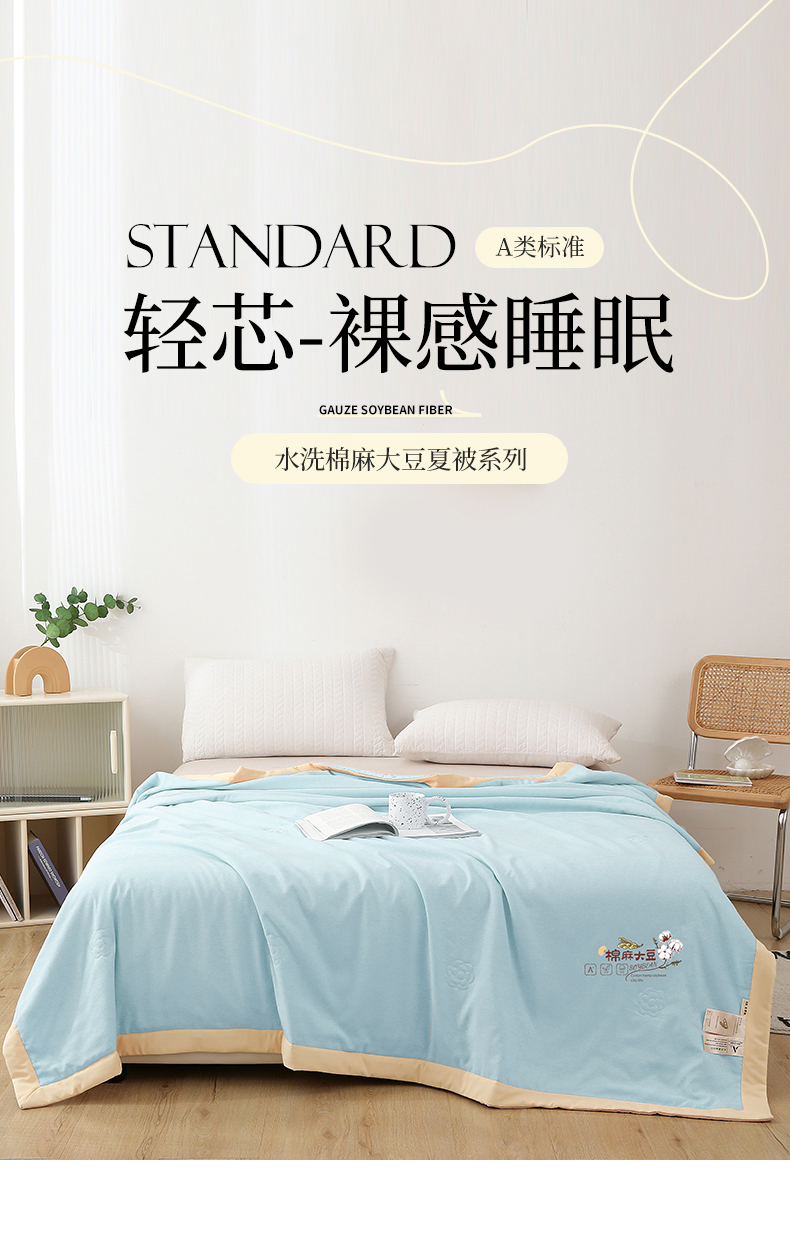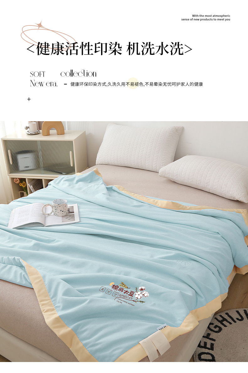薇玛仕 2026直播爆款水洗棉麻大豆夏凉被纯色手工包边空调被 棉麻-天蓝