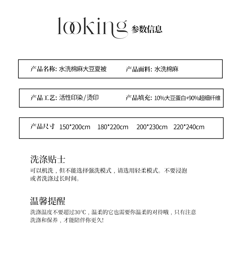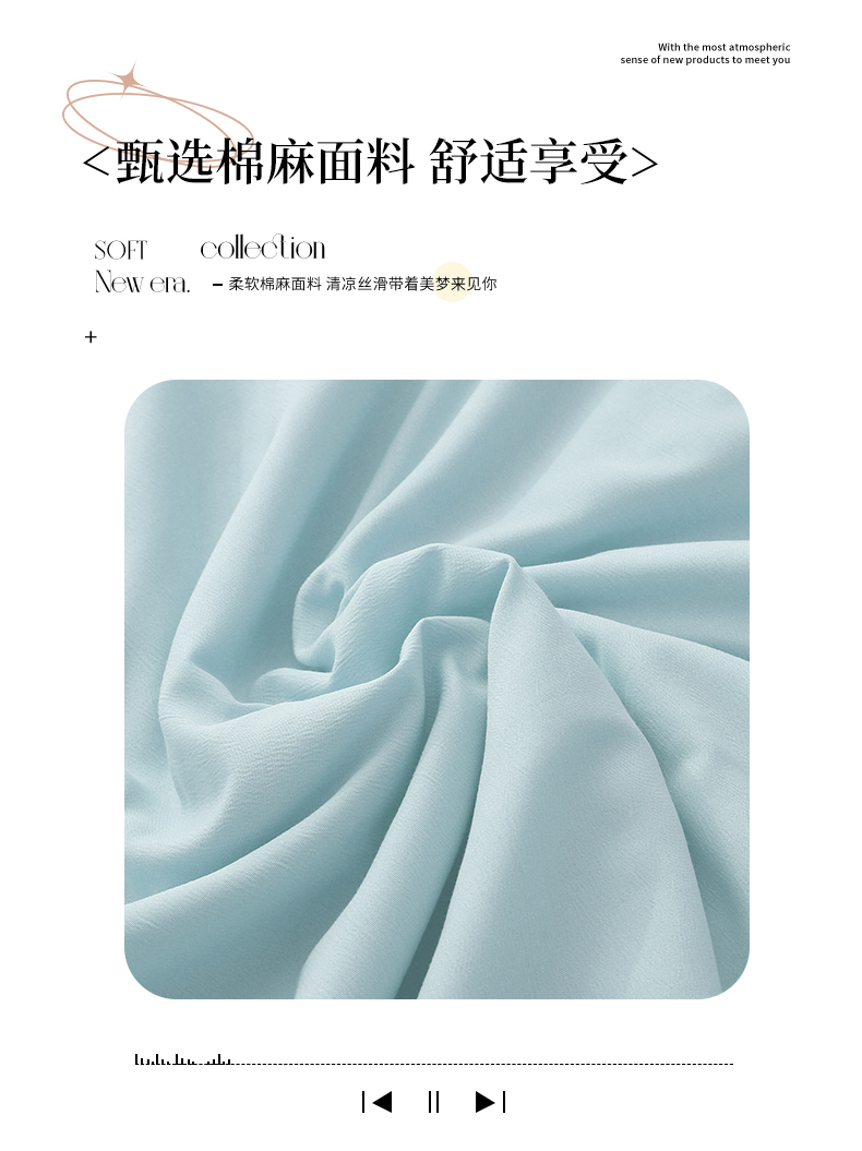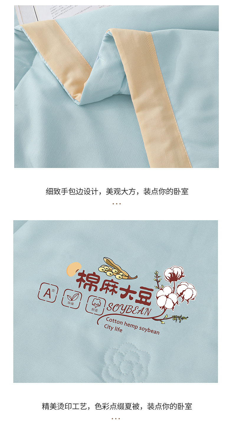 商品名称:薇玛仕 2026直播爆款水洗棉麻大豆夏凉被纯色手工包边空调被 棉麻-天蓝