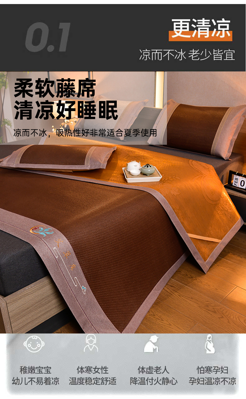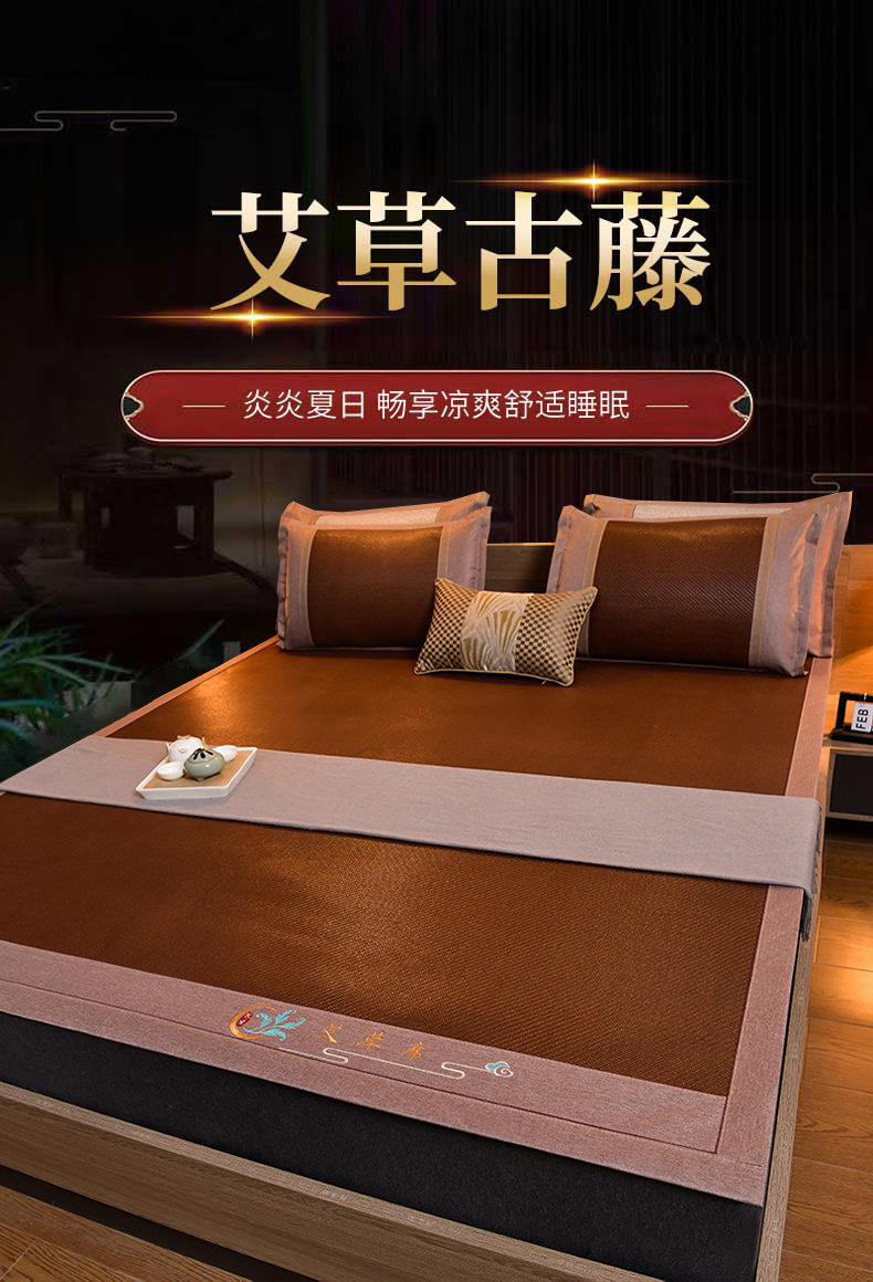 当前位置: 91家纺网 > 商品网购 > 床上用品 > 凉席 > 藤席 > 苏迪网销供货 2026新款凉席冰藤席冰丝席凉感空调席艾草藤席 艾草古藤--黑咖