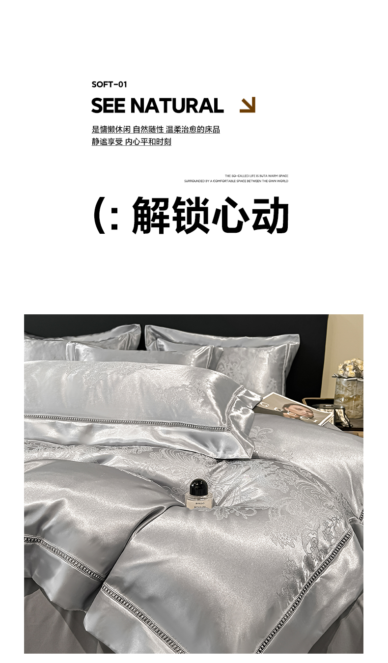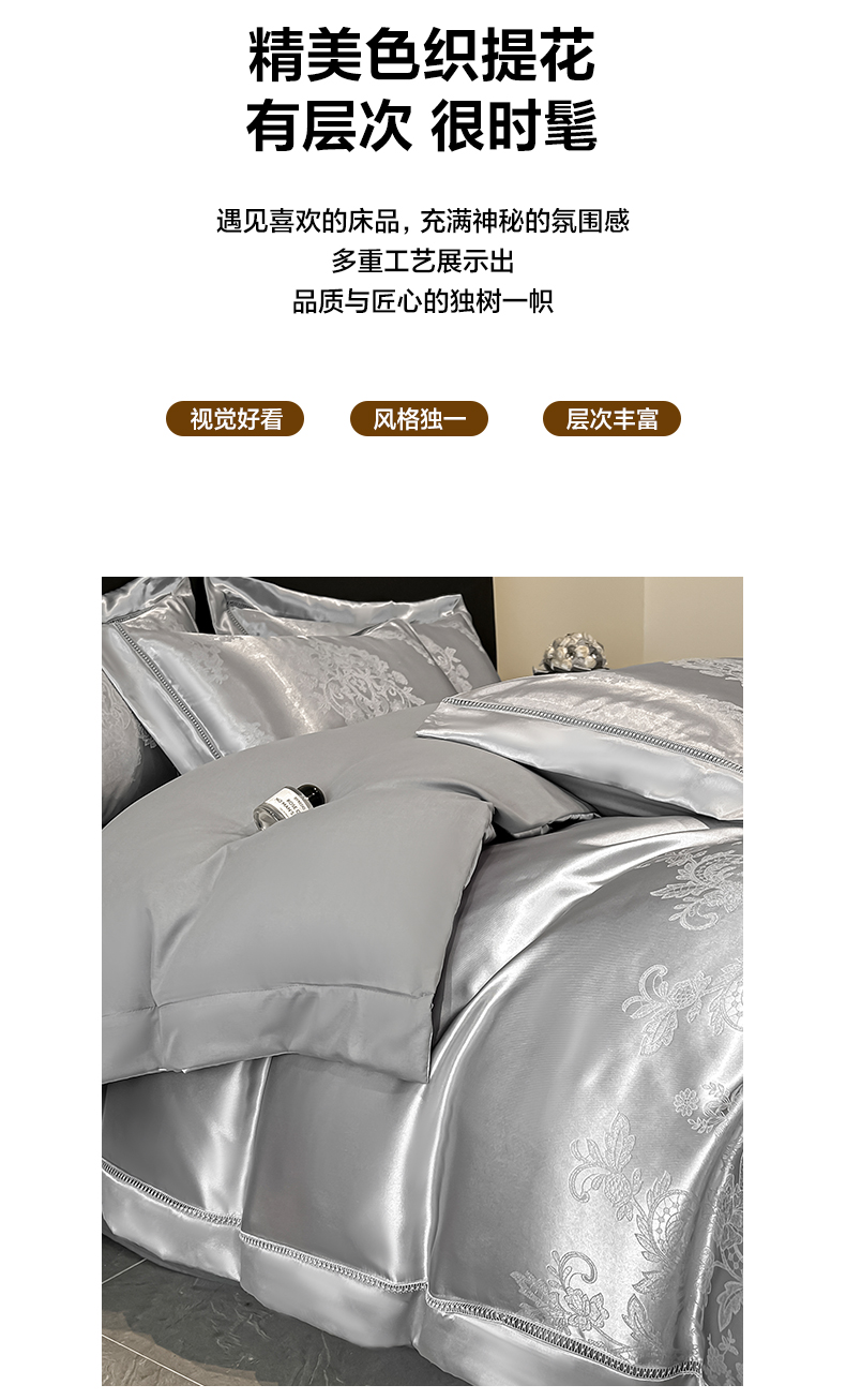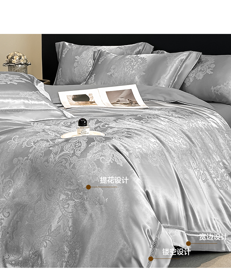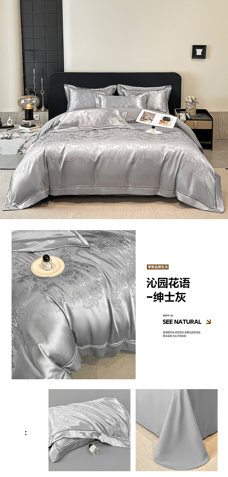 当前位置: 91家纺网 > 商品网购 > 床品套件 > 四件套 > 其它四件套 > 博纳家纺 2026春夏新款轻奢高端色织定位提花拼角镂空款款四件套-沁园花语 沁园花语-绅士灰