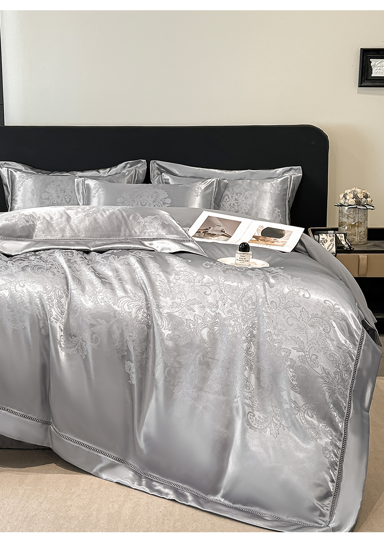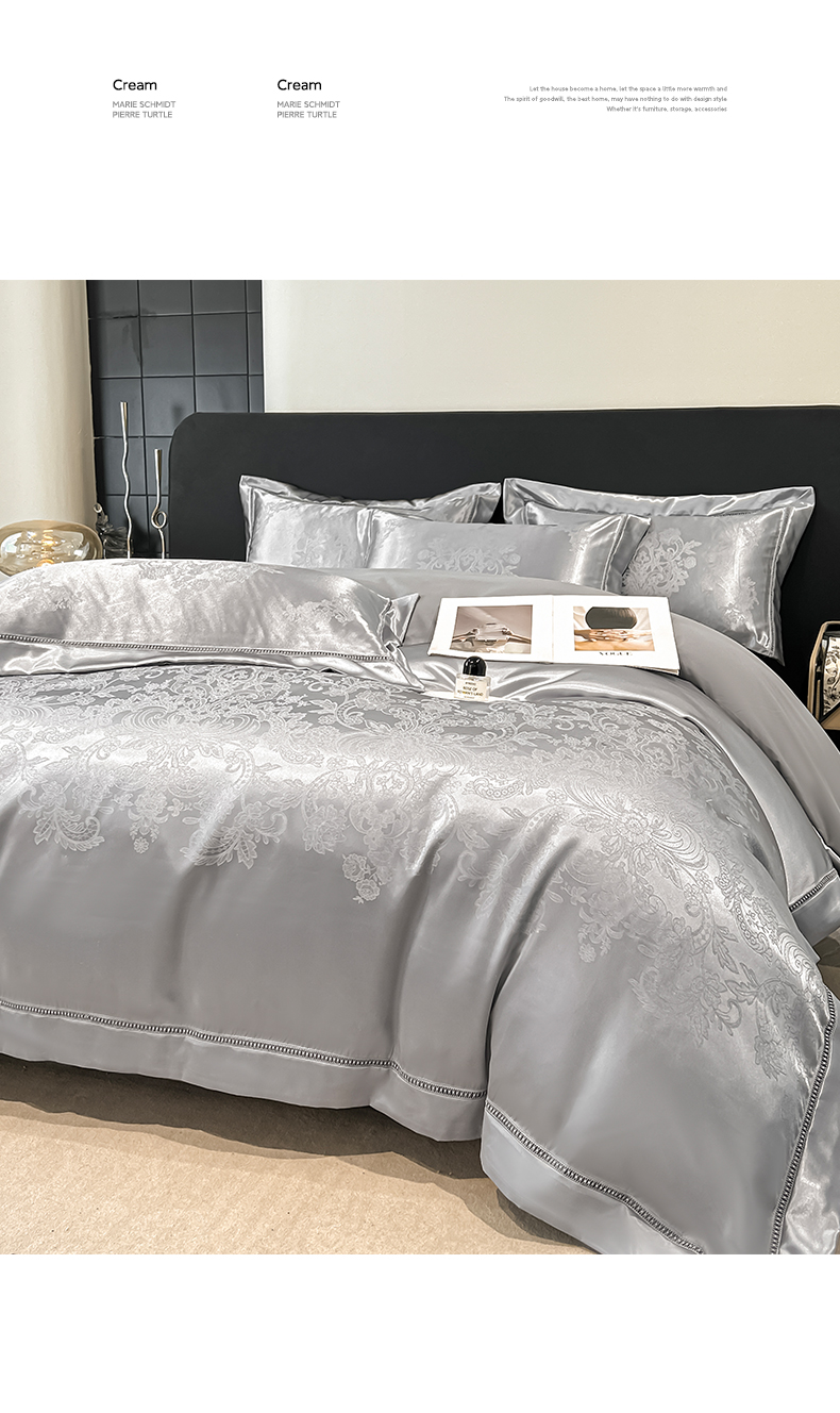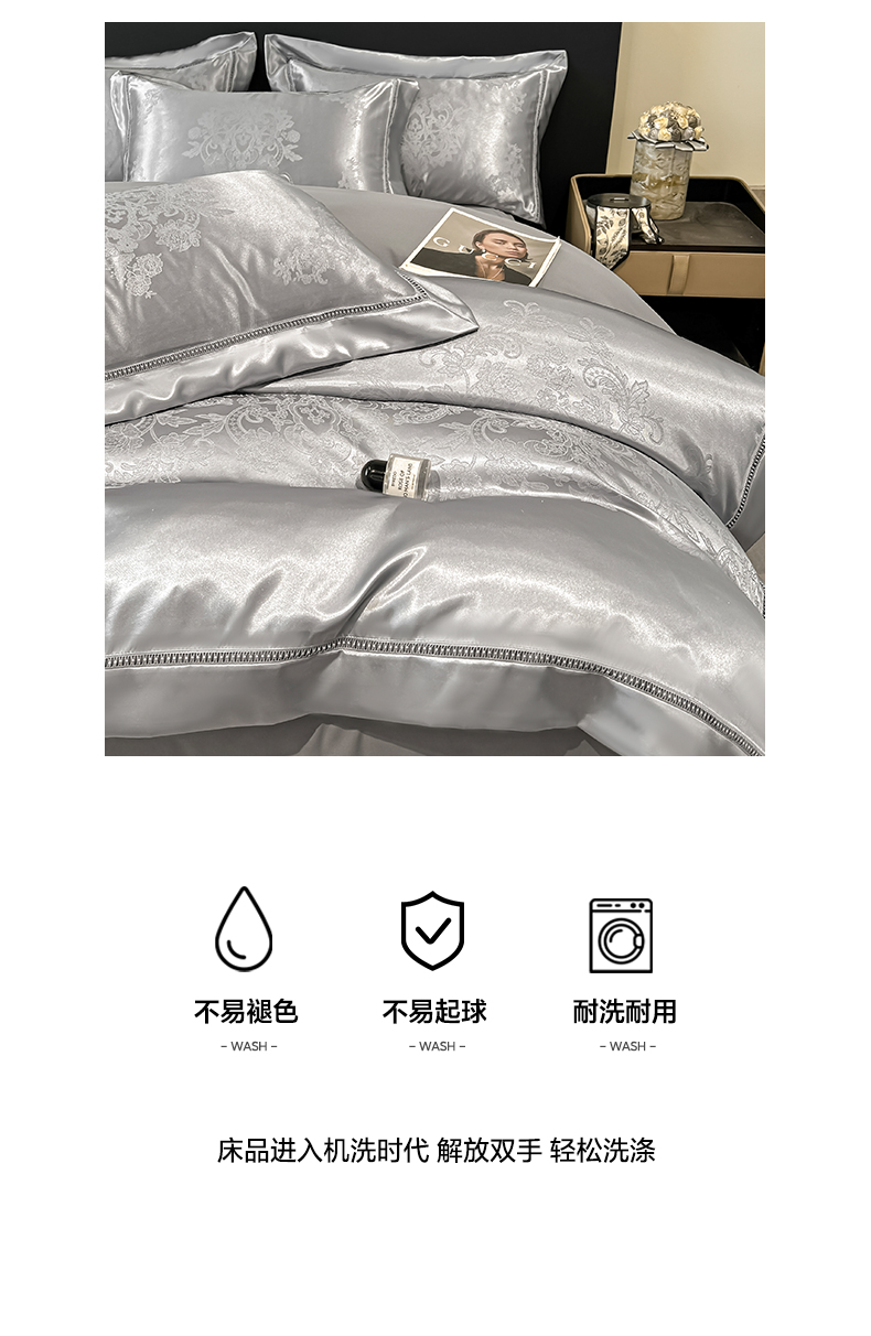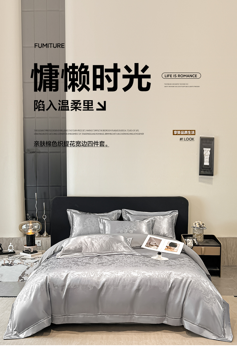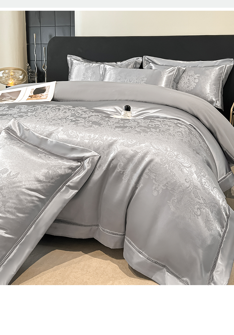 当前位置: 91家纺网 > 商品网购 > 床品套件 > 四件套 > 其它四件套 > 博纳家纺 2026春夏新款轻奢高端色织定位提花拼角镂空款款四件套-沁园花语 沁园花语-绅士灰