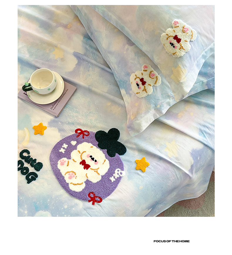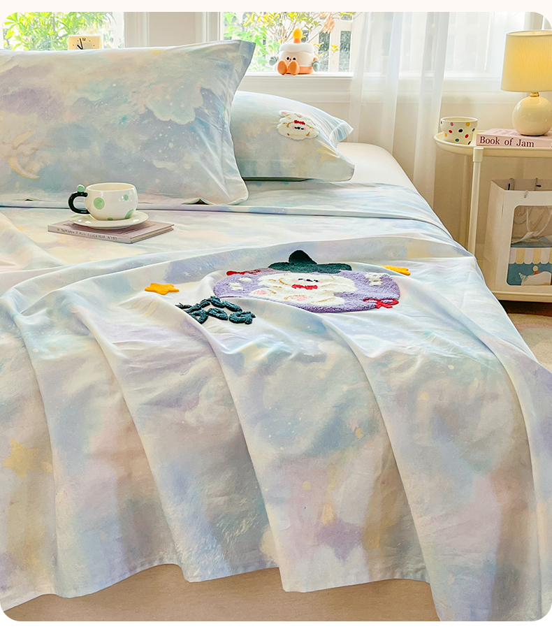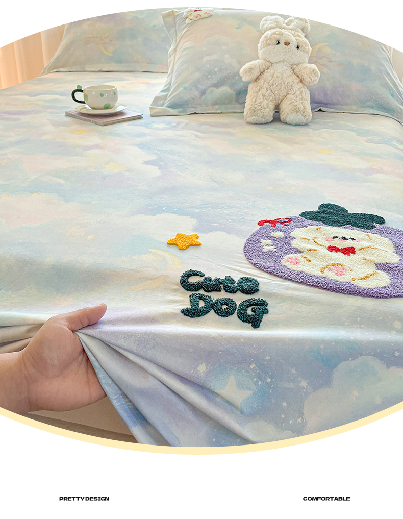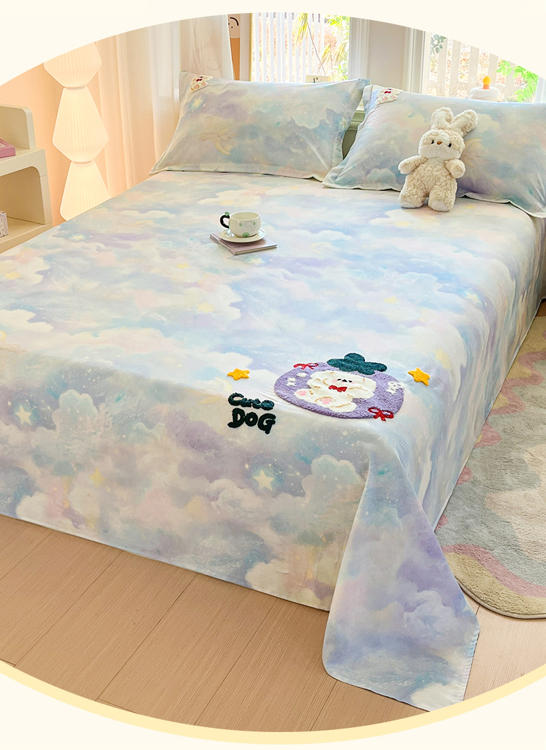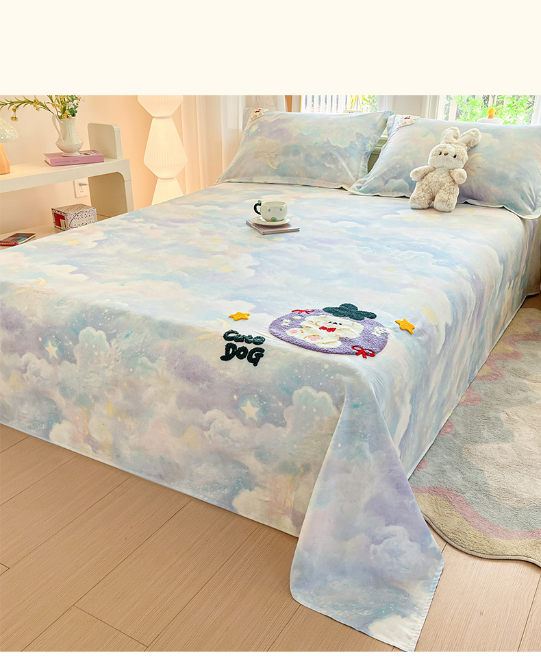 笙意家纺 2026新款50S全棉纯棉毛巾绣单品床单床单单件 星云萌犬