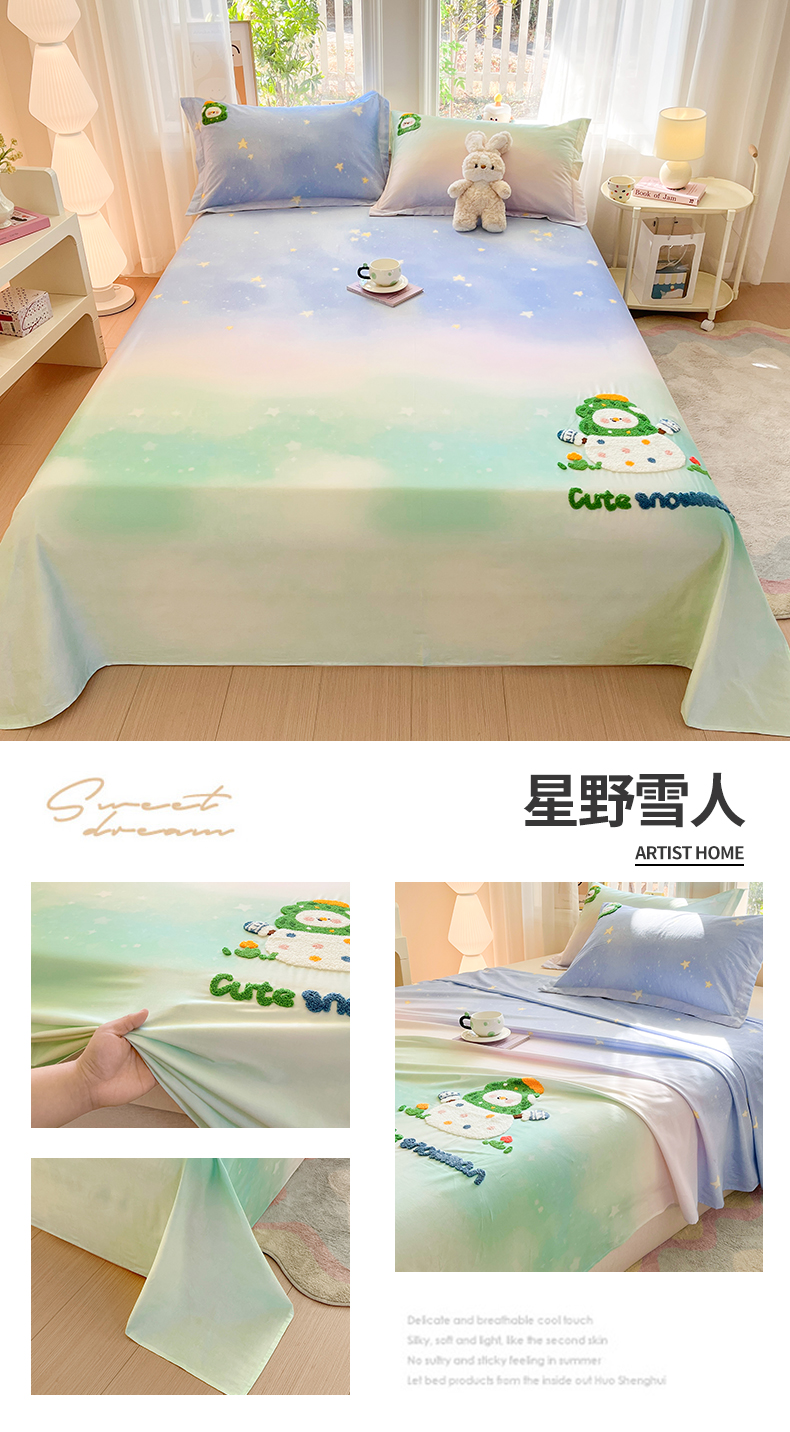 • 91家纺网 家纺一手货源 找家纺 笙意家纺 2026新款50S全棉纯棉毛巾绣单品床单床单单件 星云萌犬