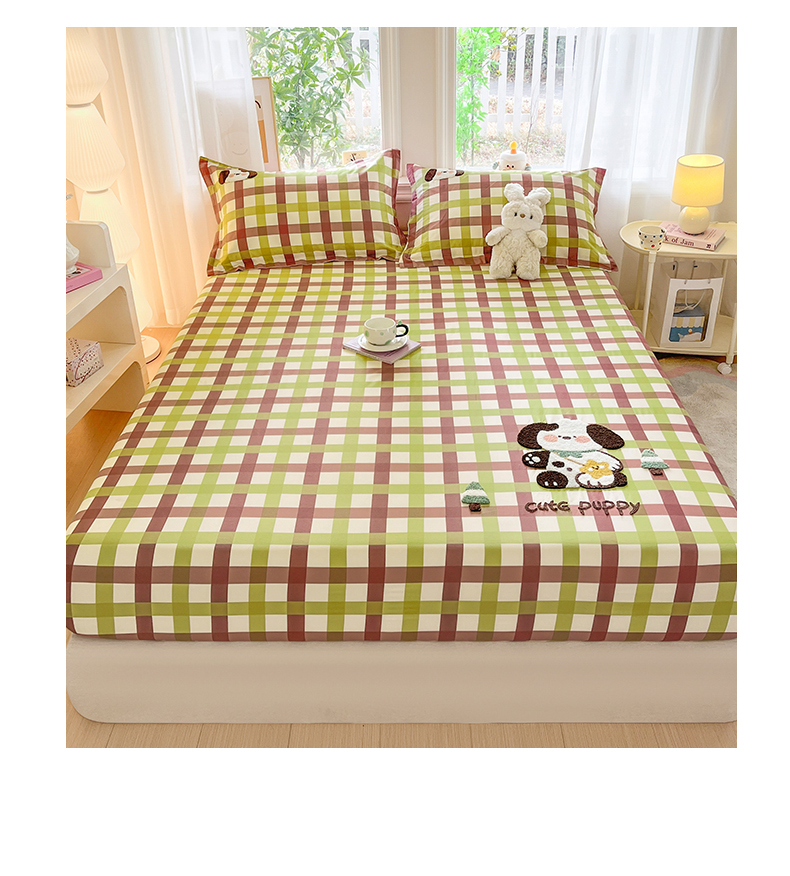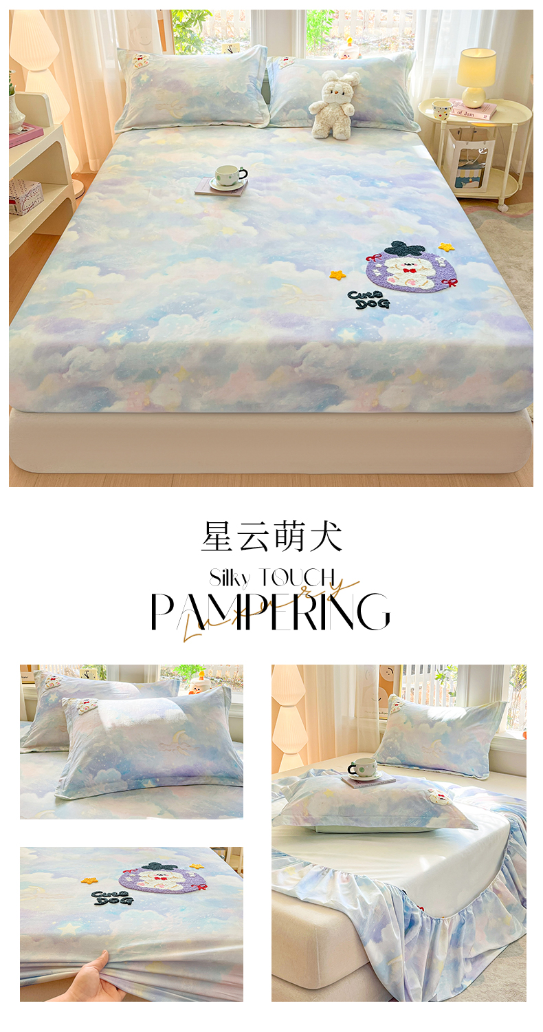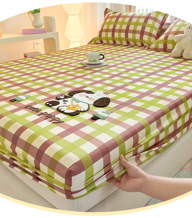 (总)笙意家纺 2026新款50S全棉纯棉毛巾绣单品床笠床笠单件,雾蓝小兔,粉豹纹喵,复古格犬,海盐萌宠,派对小熊,甜心kt,星甜狐兔,星野雪人,星云萌犬