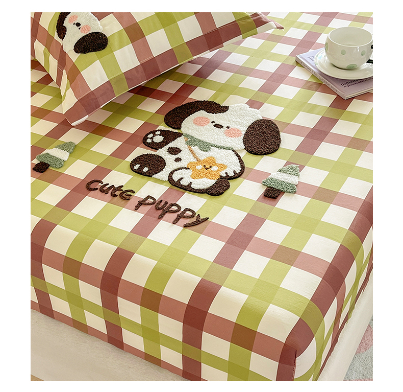 笙意家纺 2026新款50S全棉纯棉毛巾绣单品床笠床笠单件 复古格犬
