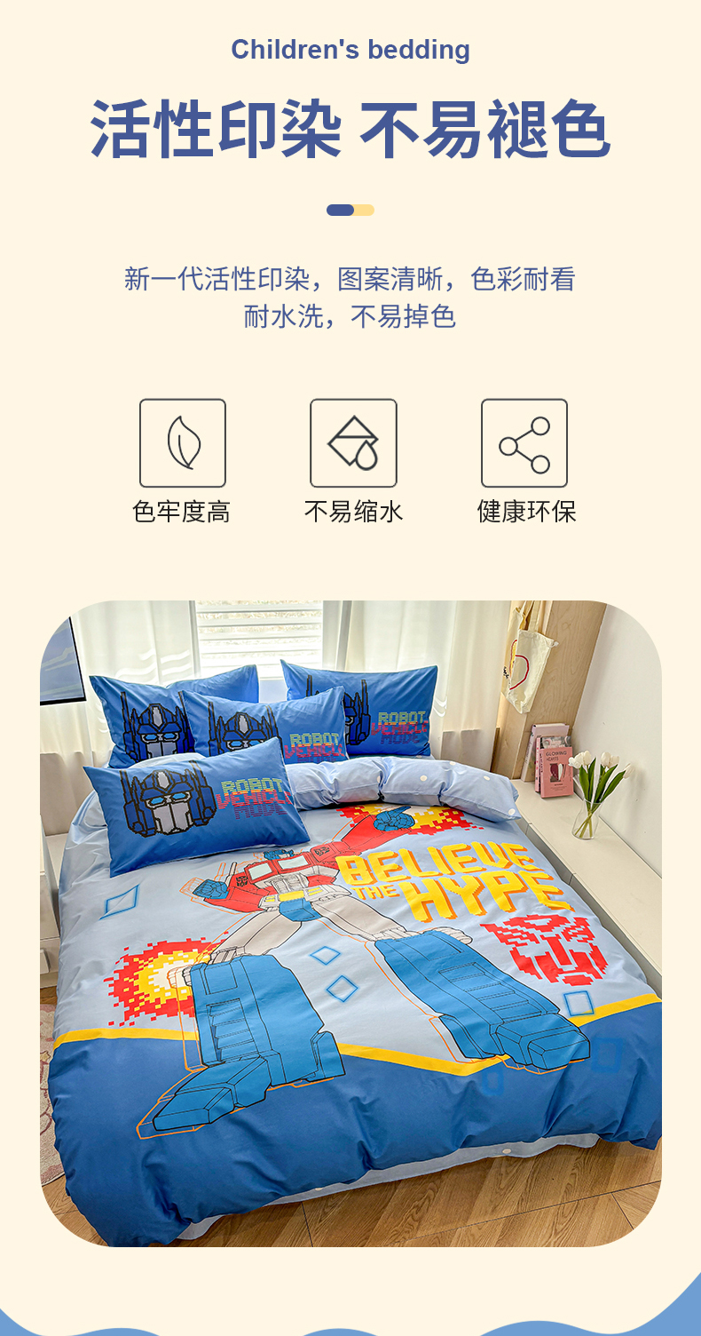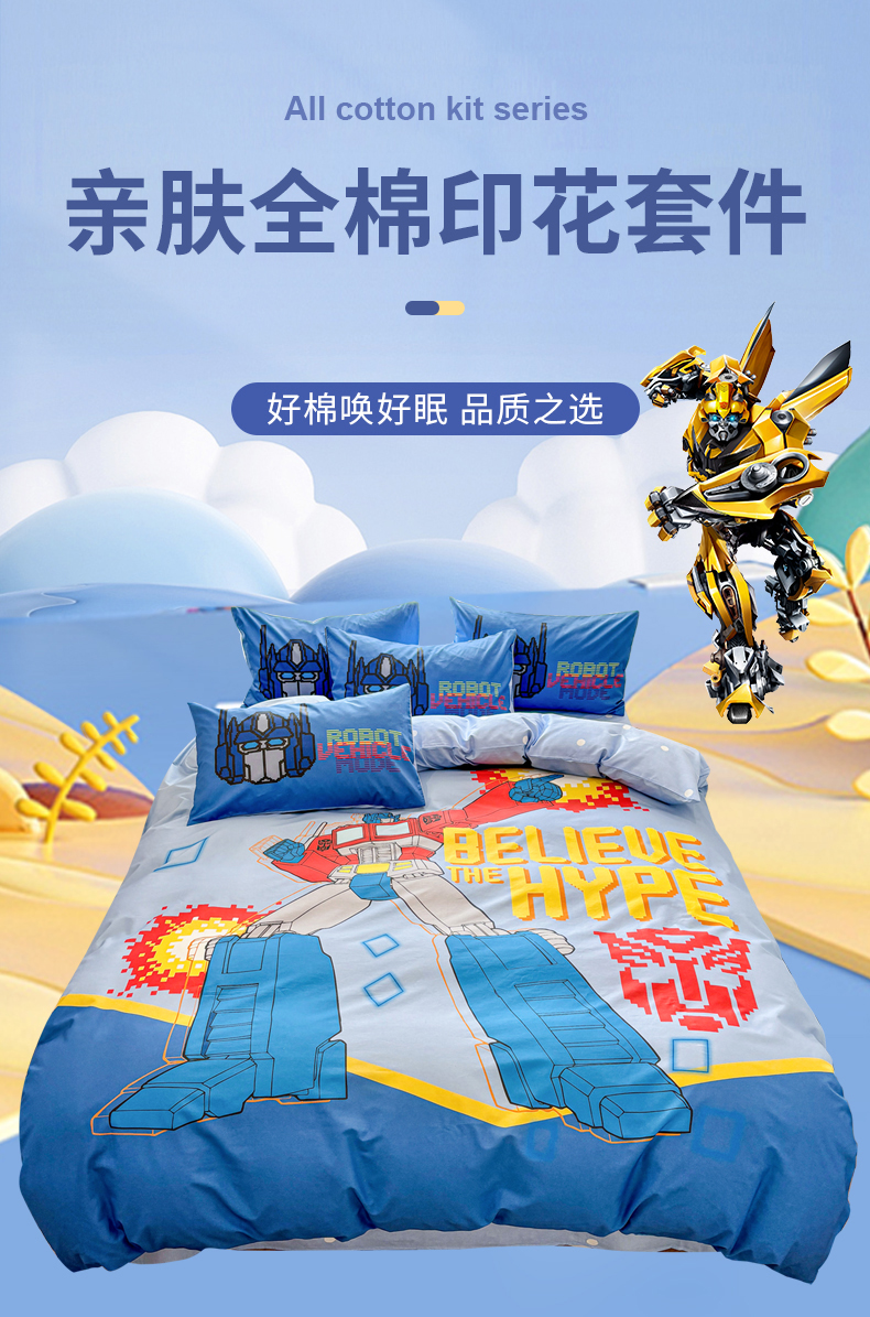当前位置: 91家纺网 > 商品网购 > 床品套件 > 四件套 > 全棉普通四件套 > 孩子王家纺 2026新款卡通全棉纯棉正版授权大版变形金刚四件套 机甲擎天柱