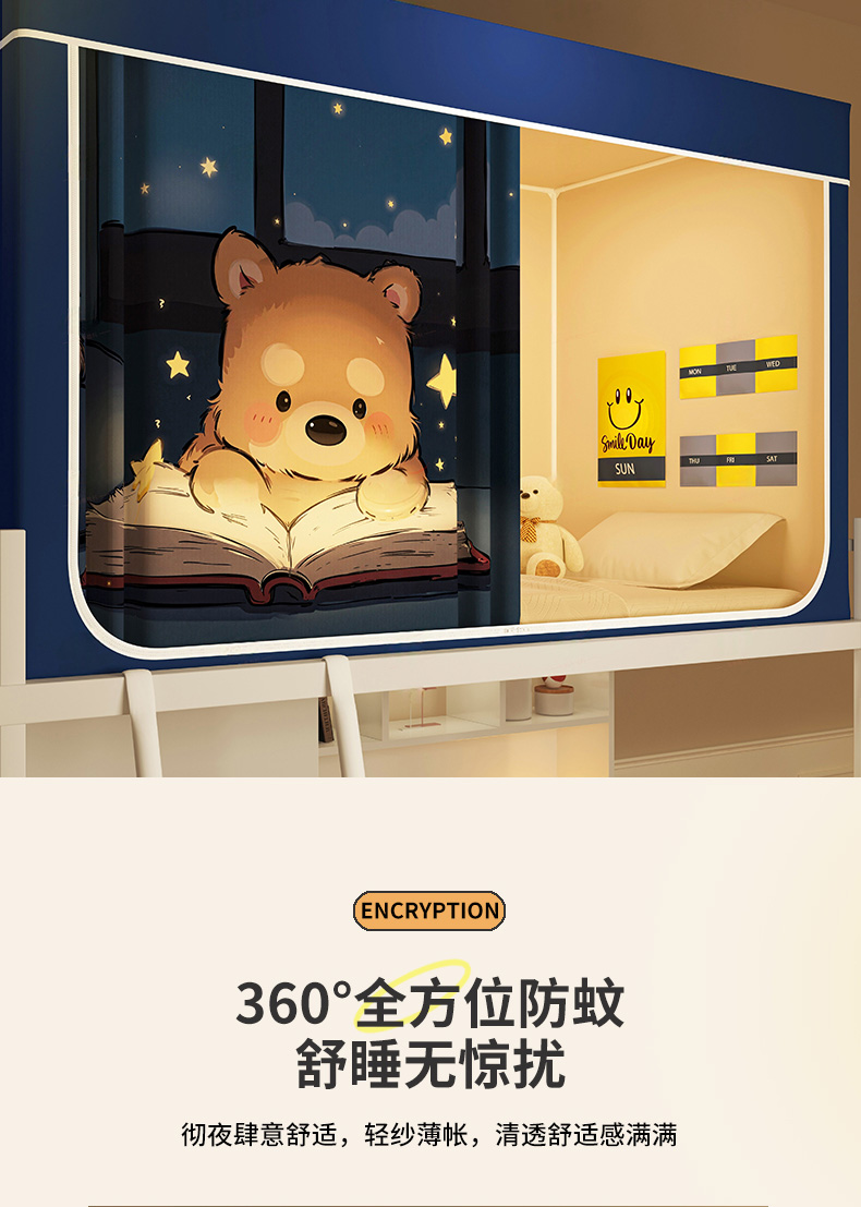 商品名称:(总)宅部落 2026新款宅部落学生床帘宿舍上下铺印花无涂层强遮光学生蚊帐