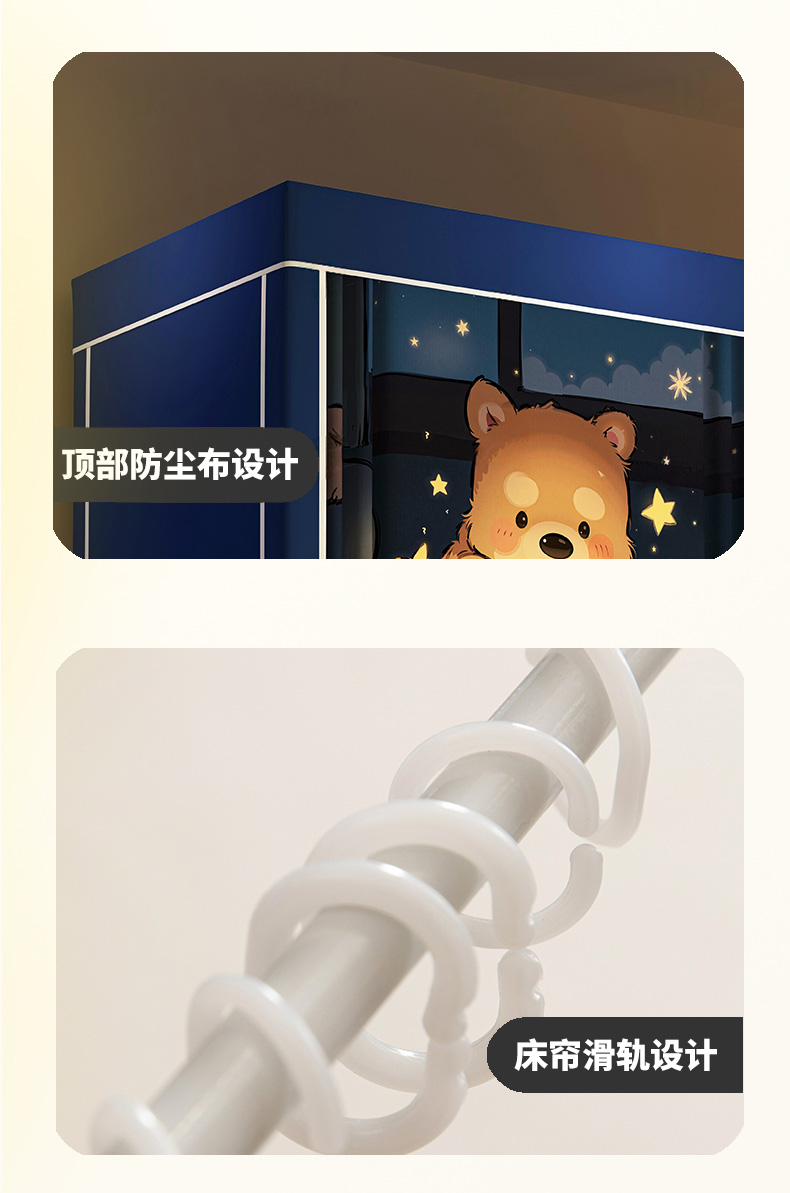90上下铺通用(带靠墙帘):90宽x190长x90-110高(免安装)一秒打开