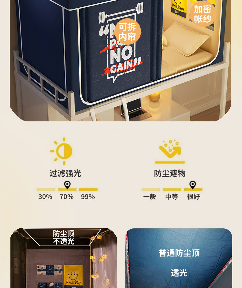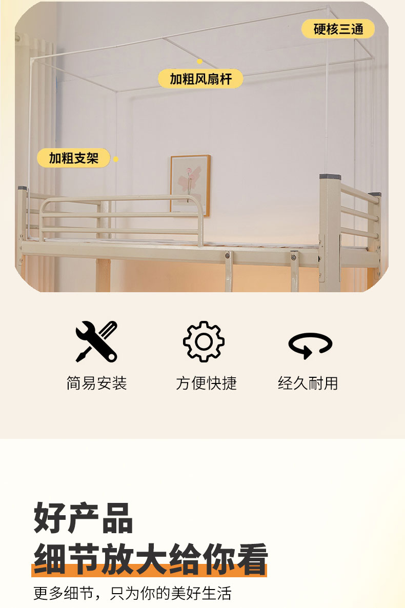 80,90上下铺通用(带靠墙帘):80-100宽x190长x90-120高(宽高伸缩支架) | ¥108.00 |