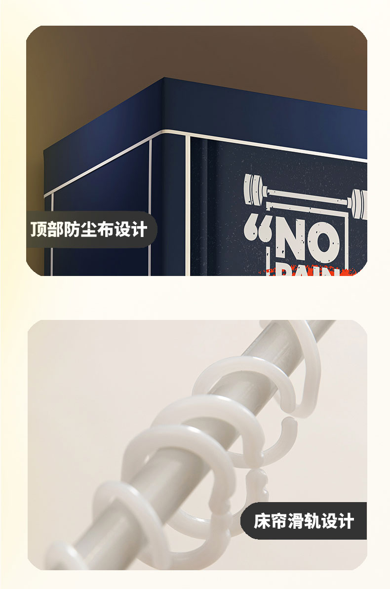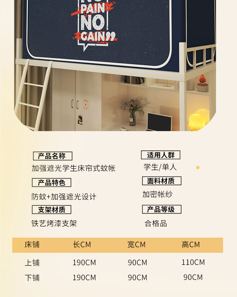90上下铺通用(带靠墙帘):90宽x190长x90-120高(高度伸缩) | ¥105.00 |