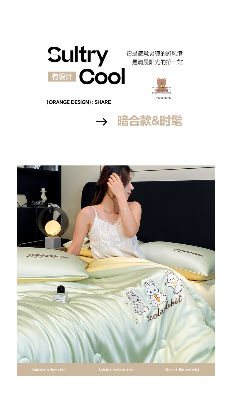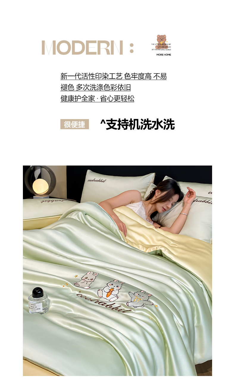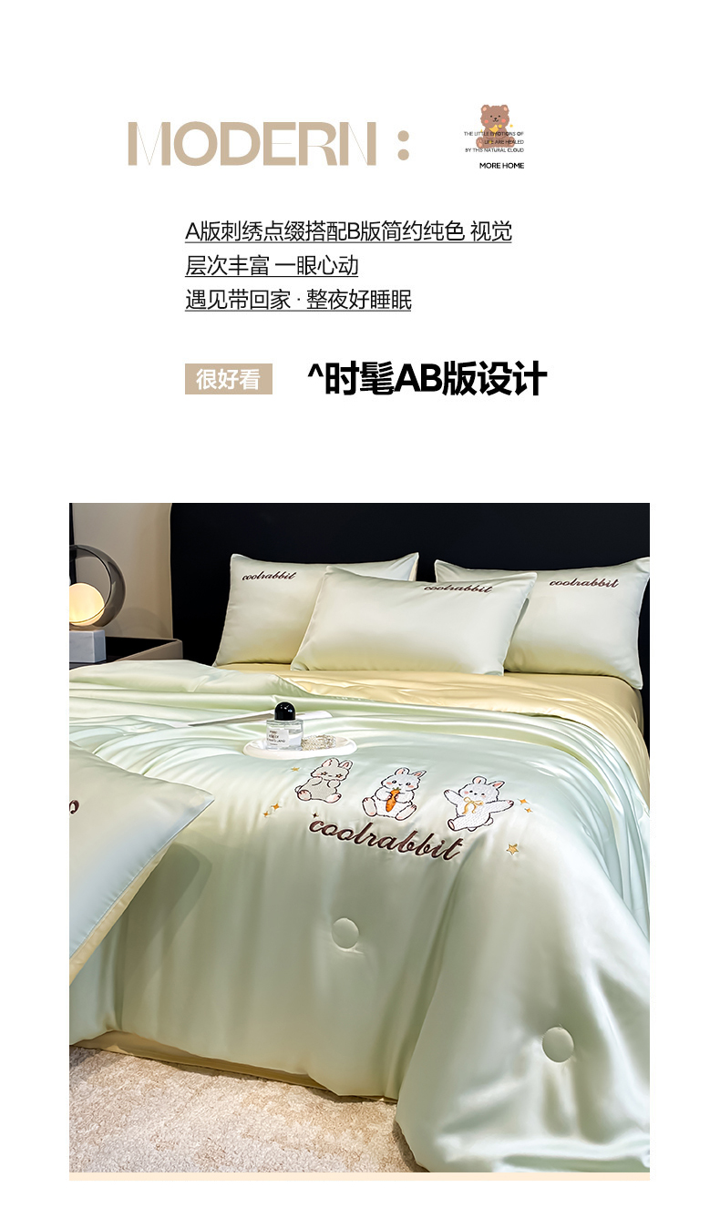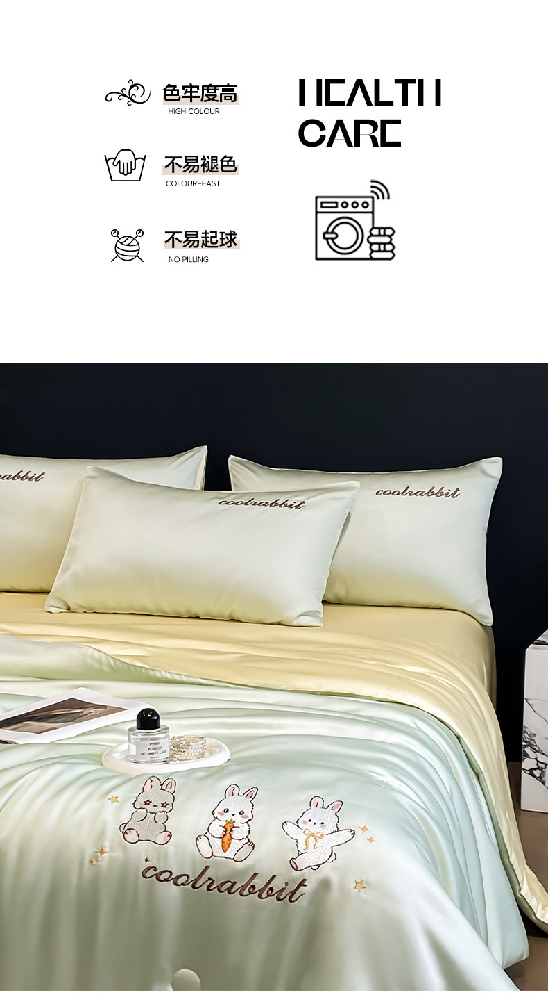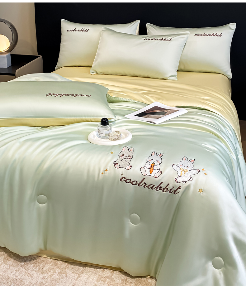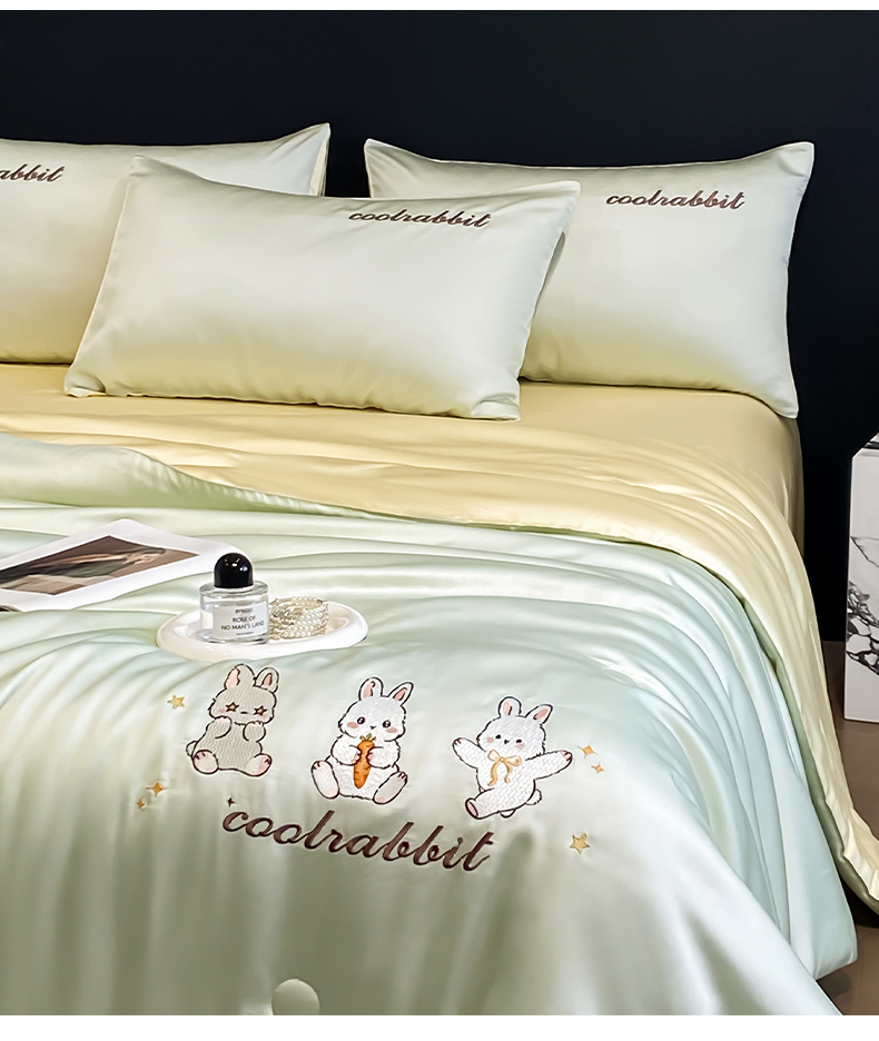 当前位置: 91家纺网 > 商品网购 > 床品套件 > 四件套 > 全棉普通四件套 > 云棉坊 2026新款水洗真丝冰丝刺绣夏被四件套-卡通款 乖乖兔-果绿+奶黄