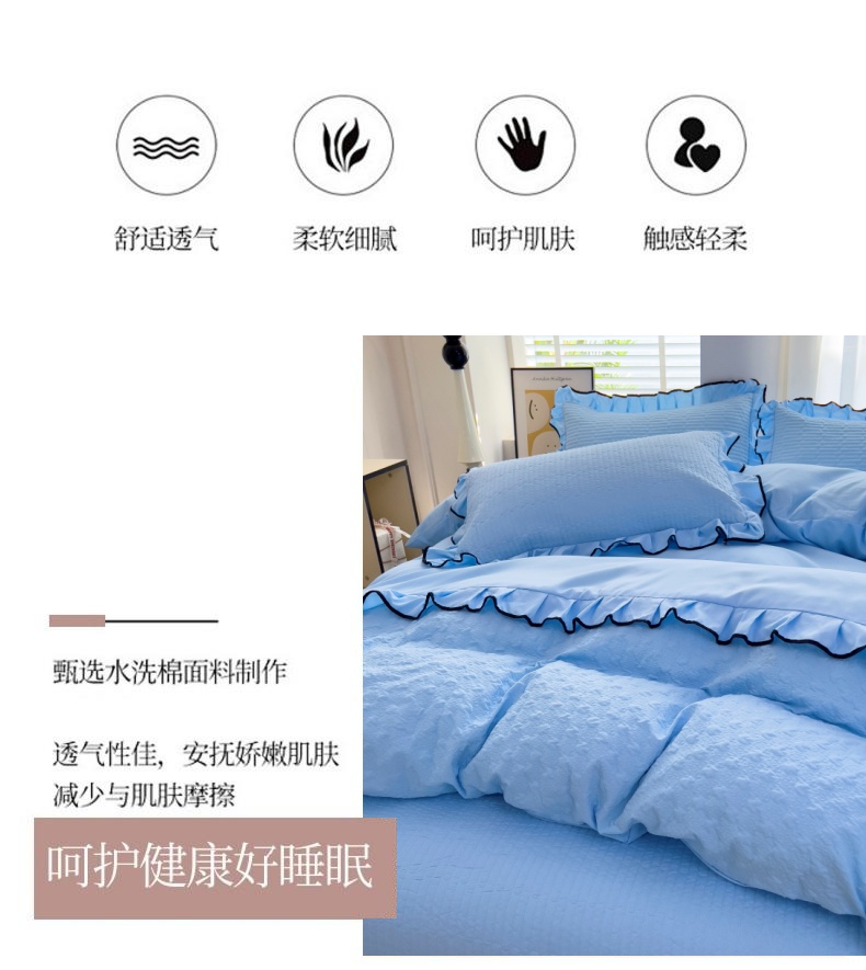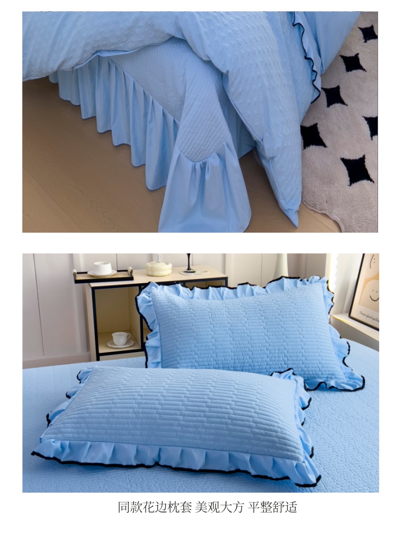 (总)畅畅家纺 2026新款春夏高档轻奢韩版提花花边床盖四件套水洗真丝冰丝套件,花边-粉色,花边-米白色,花边-蓝色,花边-浅玉
