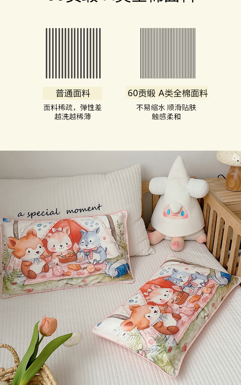 商品名称:萌宝家纺 2026新款A类60S全棉纯棉儿童枕套大版宝宝枕头枕芯 丛林聚餐