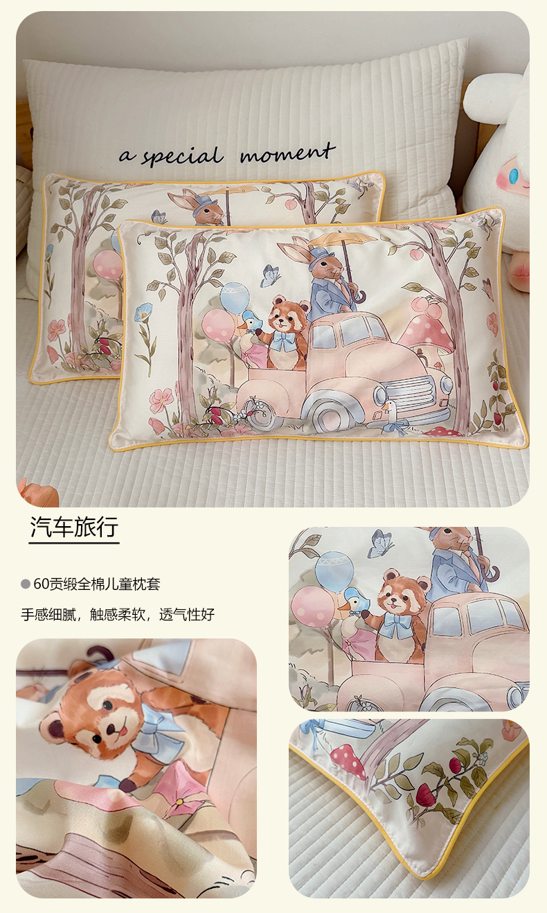 (总)萌宝家纺 2026新款A类60S全棉纯棉儿童枕套大版宝宝枕头枕芯,组合图仅供展示不可下单,丛林聚餐,汽车旅行,天鹅湖,甜梦蛋糕,摇篮兔子,游乐园,云月绮梦