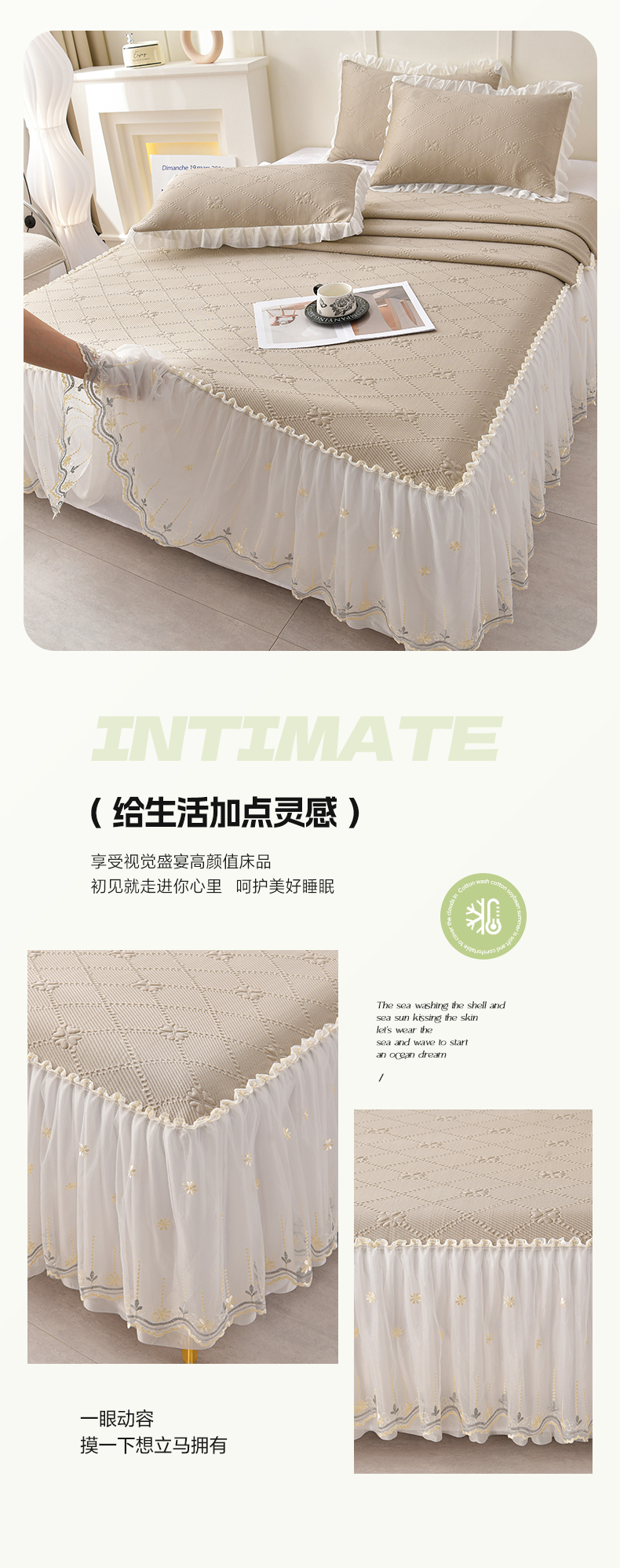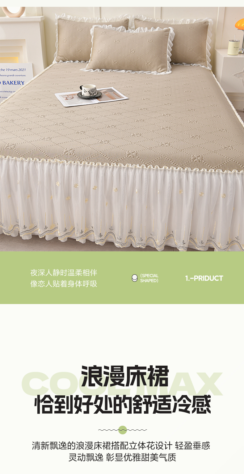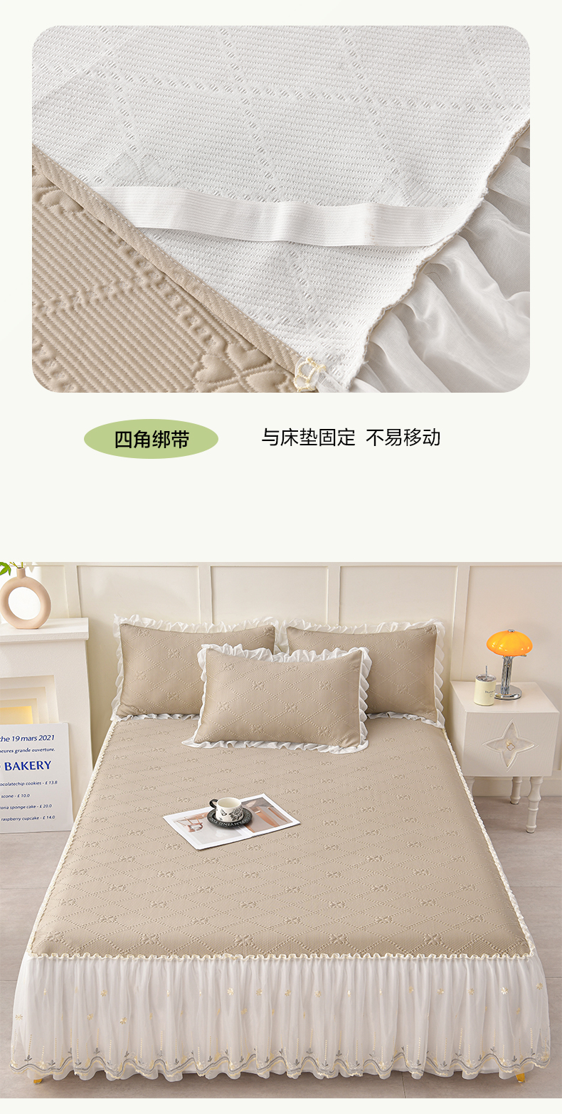 商品名称:畅畅家纺 2026新款网红爆款夏季立体爱心冰豆豆凉席床裙款三件套 爱心-咖