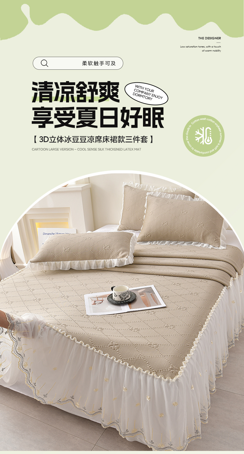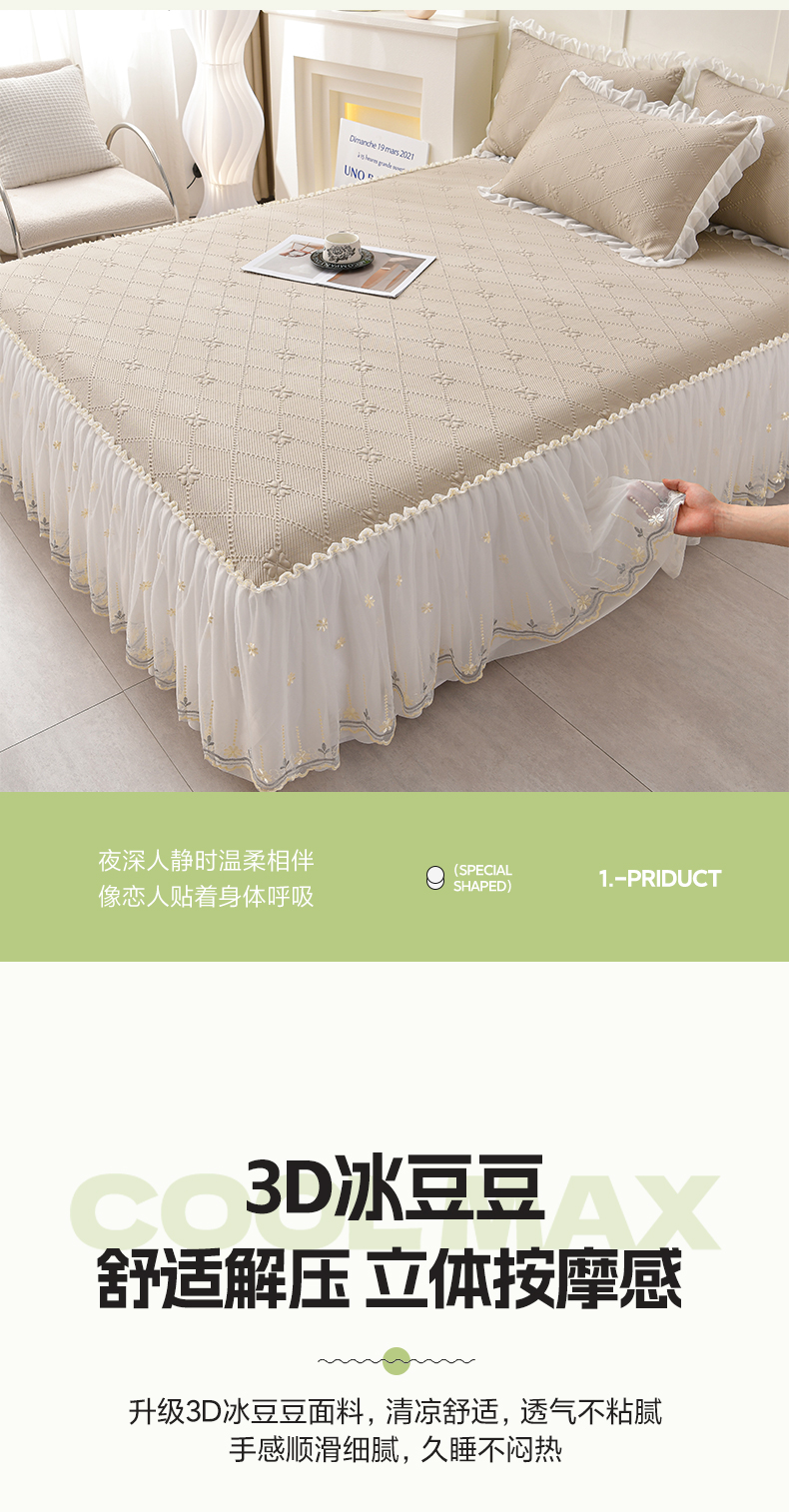 (总)畅畅家纺 2026新款网红爆款夏季立体爱心冰豆豆凉席床裙款三件套,爱心-豆沙粉,爱心-咖,爱心-浅绿,爱心-苹果绿,爱心-蓝,爱心-灰
