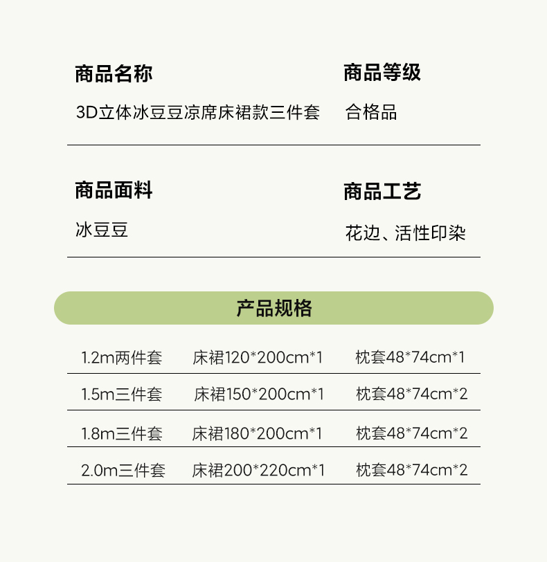 (总)畅畅家纺 2026春夏新款聚乙烯中分子凉感冰感凉豆豆凉席席子床裙三件套幸运草,幸运草-粉,幸运草-灰,幸运草-蓝,幸运草-绿