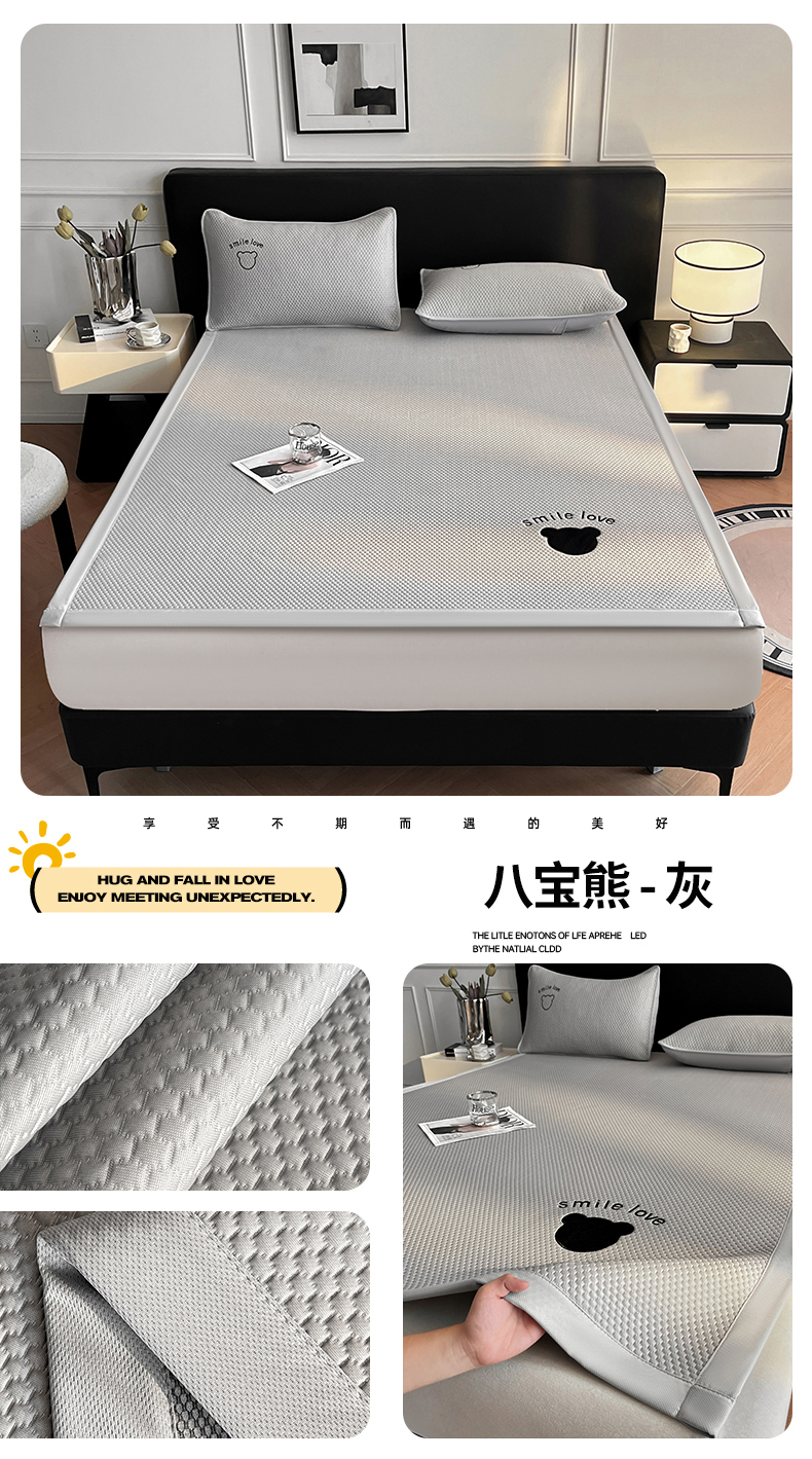 (总)奇丝雅 2026新款夏季A类真PE凉感冰豆豆凉席冰丝床单单件冰丝席可机洗单人-学生床,八宝熊-灰,八宝熊-咖,八宝熊-蓝,八宝熊-绿,八宝熊-粉