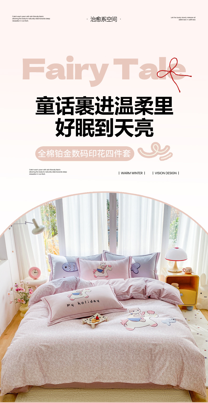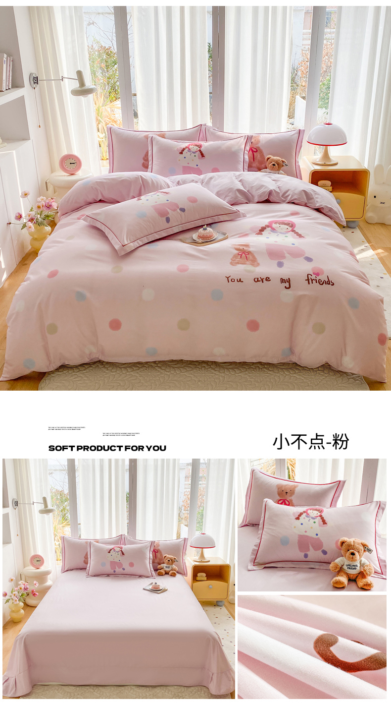 当前位置: 91家纺网 > 商品网购 > 床品套件 > 四件套 > 全棉普通四件套 > 眷恋家纺 2026新款全棉小清新铂金棉13376卡通三件套四件套 花与寻-灰