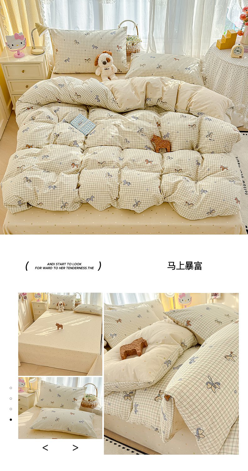 (总)铺尚美家纺 2026新款A类古法水洗仿棉云感纱四件套,萌兔小熊,安娜,波点熊,布丁狗,草莓啵啵,草莓熊-粉,草莓熊-蓝,丁香紫,格纹萌友团,格子熊,狗狗乐园,乖乖狗-灰,乖乖狗-玉,花园小猫,猫狗狂欢夜,玫瑰庄园,莫兰迪,奶绿牛油果,蔷薇花语,条纹小熊,小马星河,小奶团,星芒啵啵熊,雪花世界,英伦小木马,紫罗兰