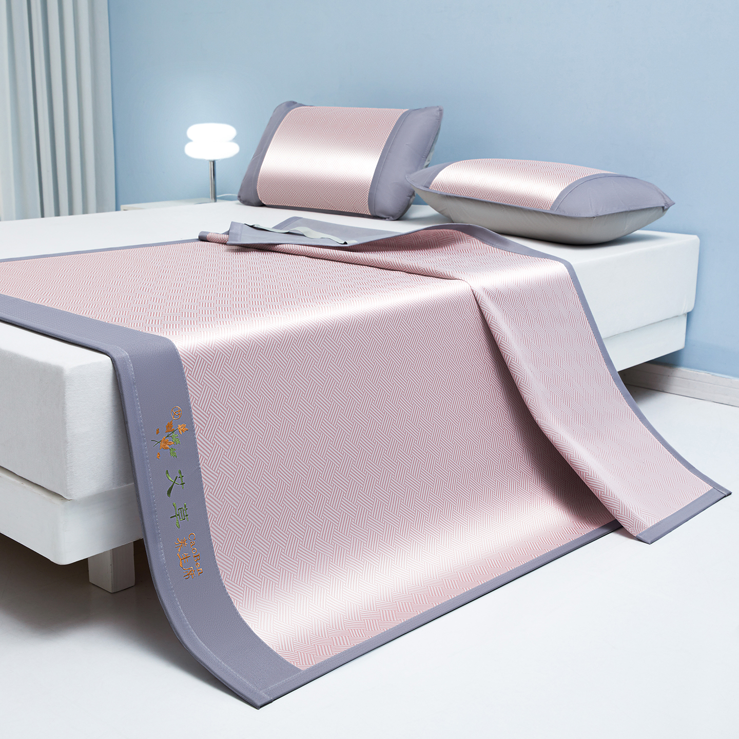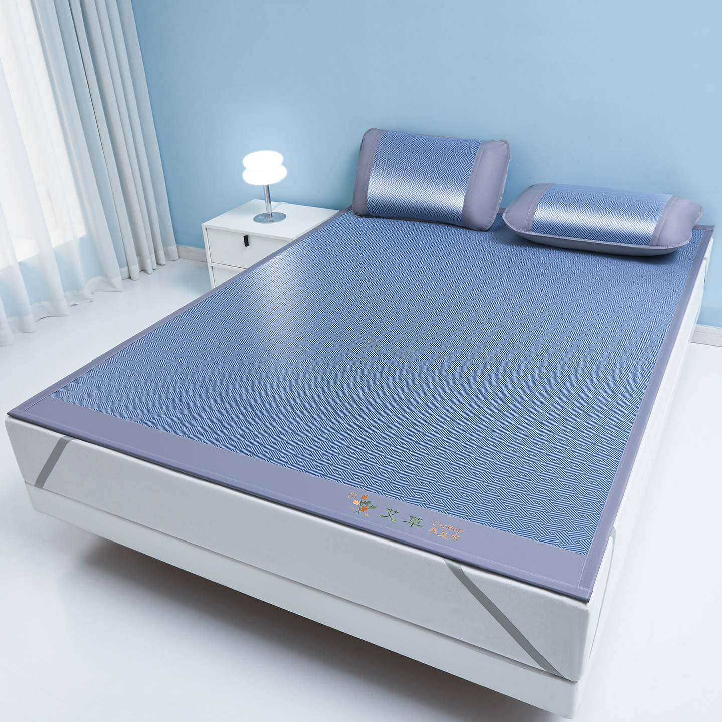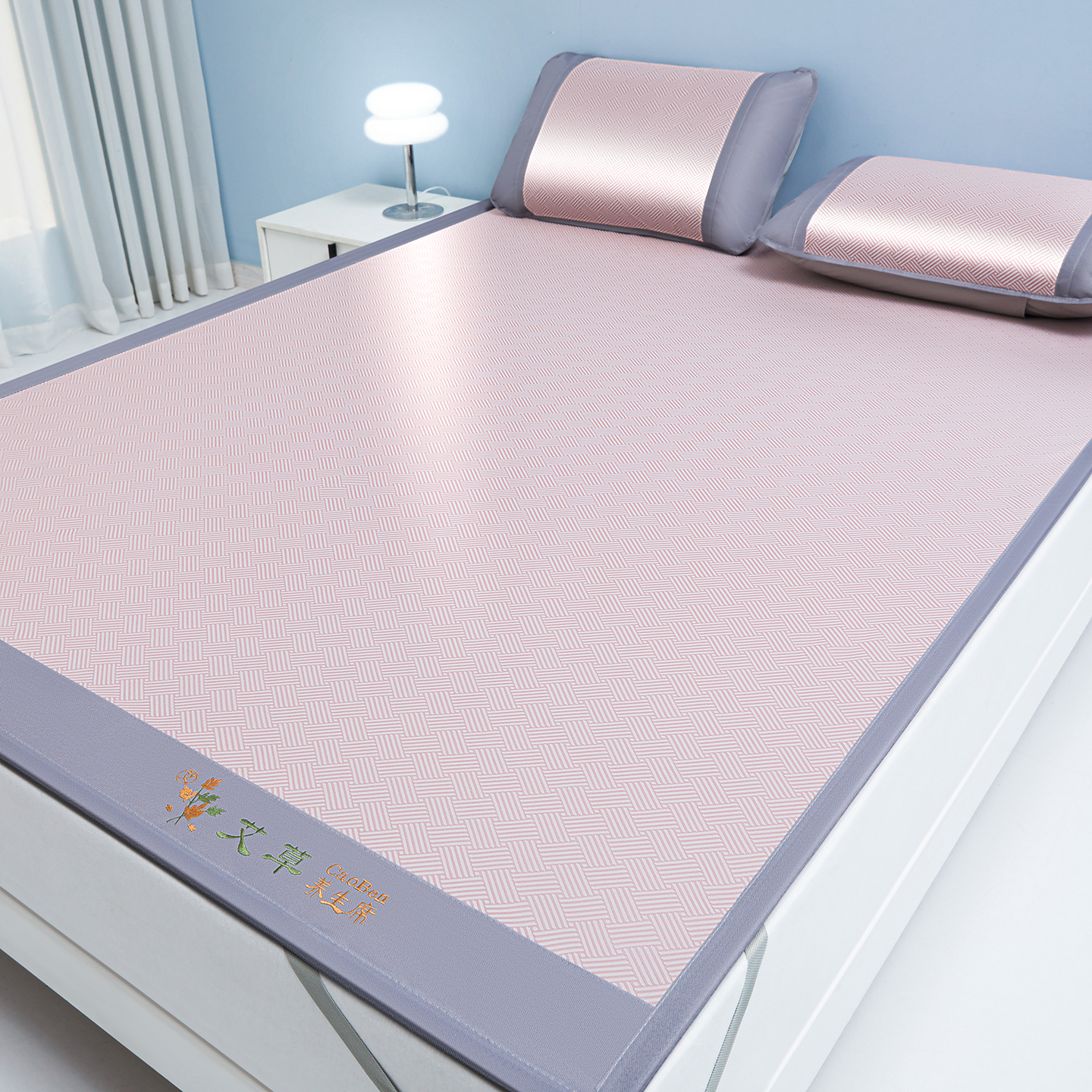 (总)席都 2024新款冰藤席床席三件套-三明治-冰藤席系列,灰,金,绿,粉,蓝