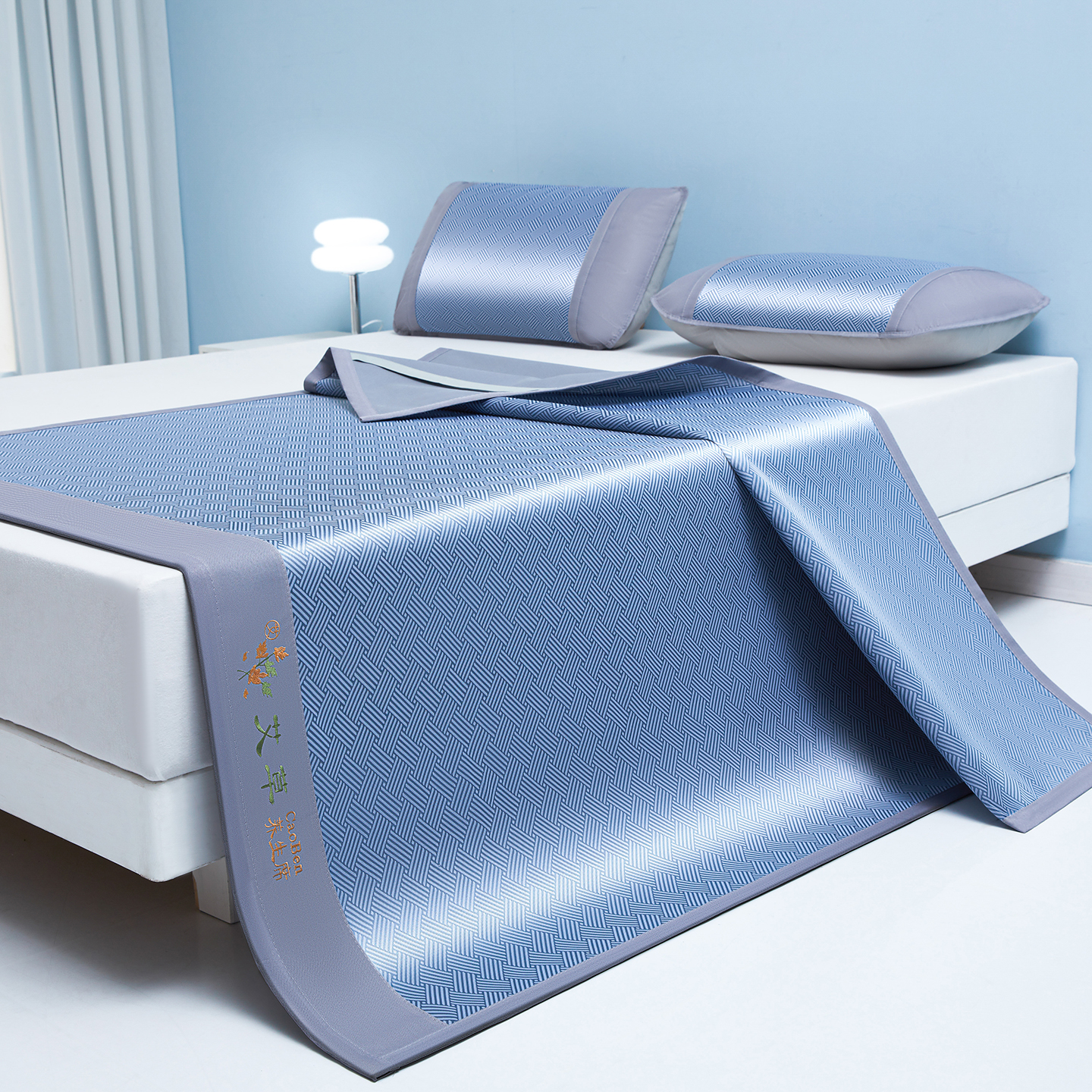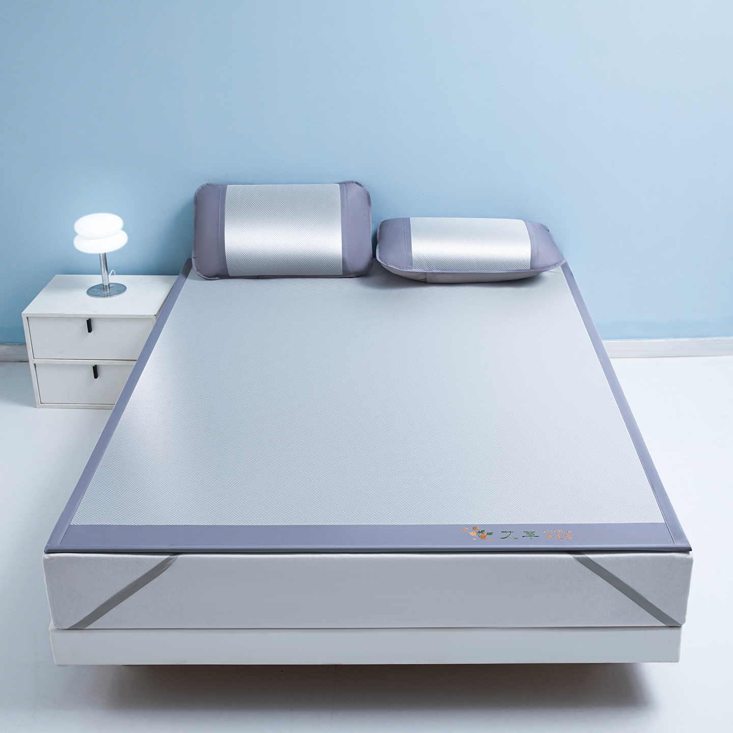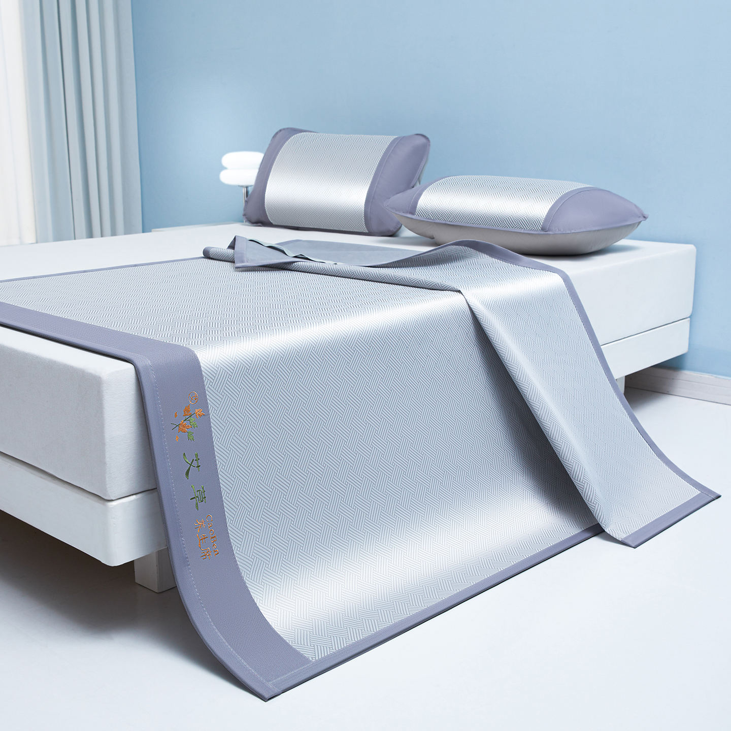 (总)席都 2024新款冰藤席床席三件套-三明治-冰藤席系列,灰,金,绿,粉,蓝