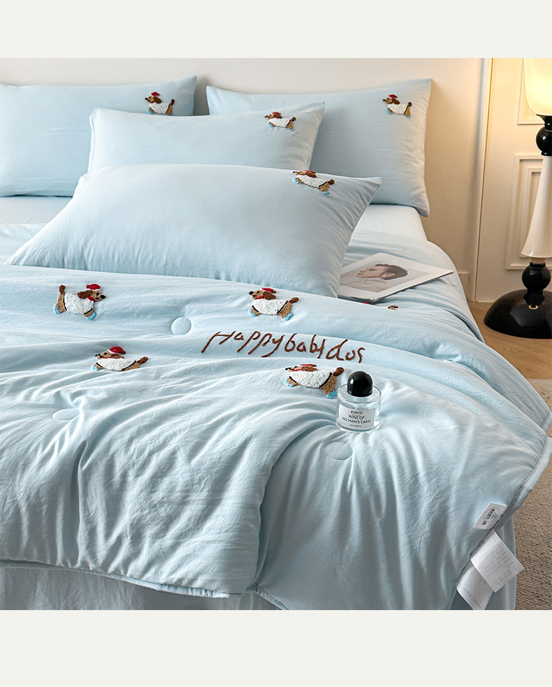 遇见家居生活馆 2026新款水洗棉毛巾绣夏被四件套-艾拉 艾拉-小狗飘蓝
