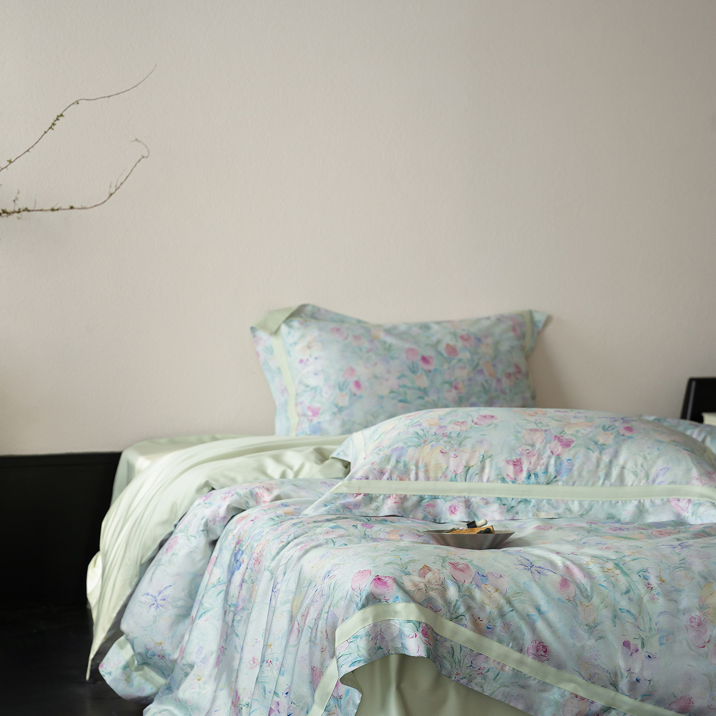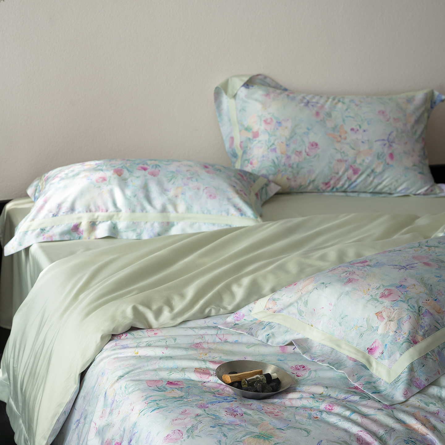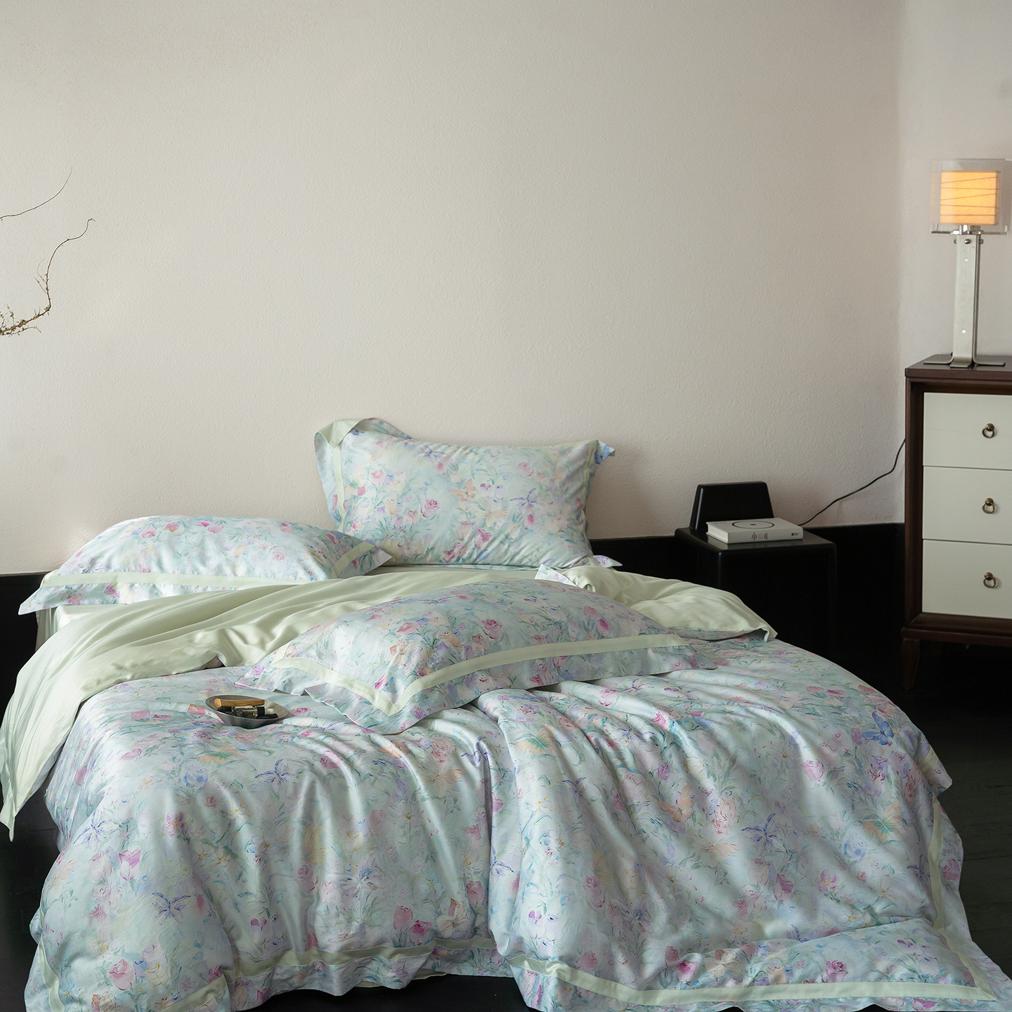 (总)花时间 2025新款100支天丝棉提花四件套,巴黎花语-绿